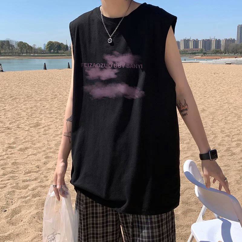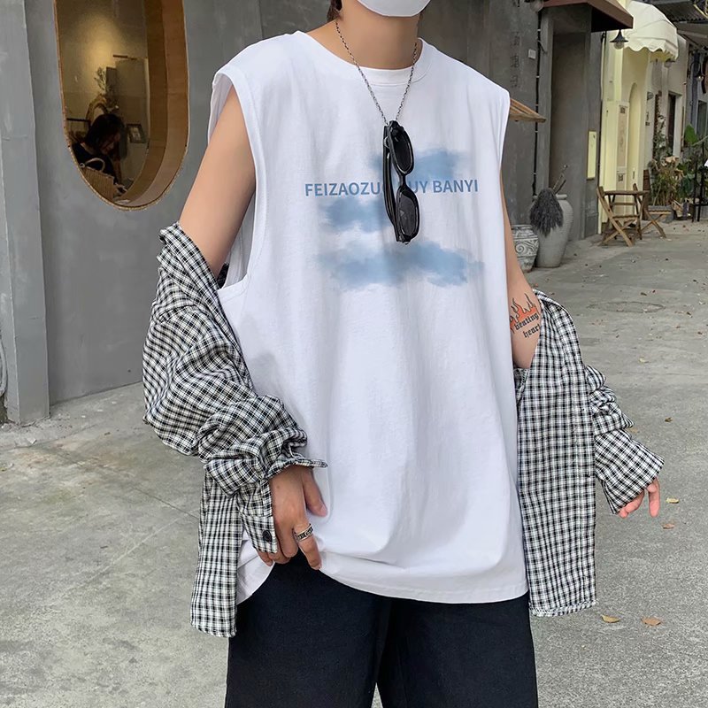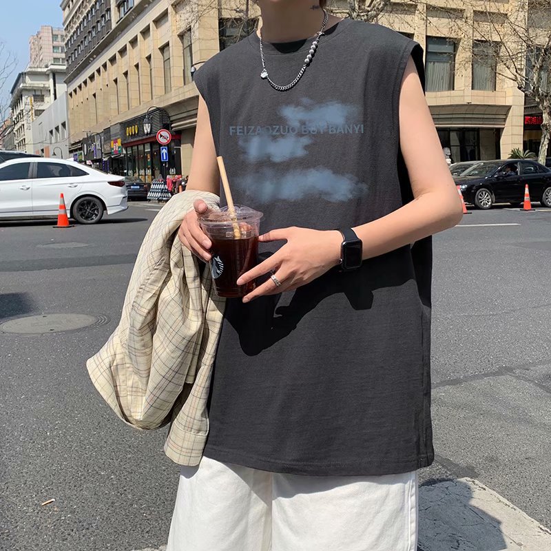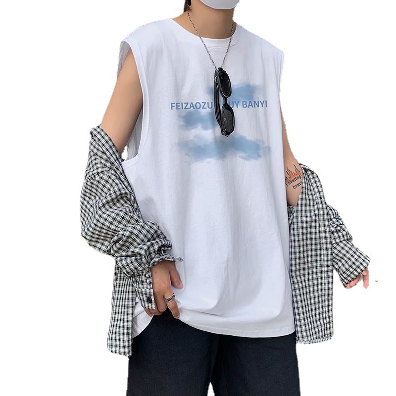 无袖t恤夏季短袖港风ins宽松潮流坎肩外穿打底运动背心男