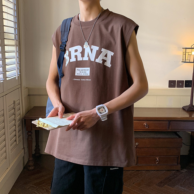 背心男士夏季纯棉外穿运动健身无袖t恤男款潮宽松大码篮球坎肩男