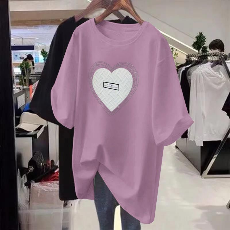 夏天大码女装中长款显瘦新款300斤上衣胖妹妹时尚遮肉短袖T恤