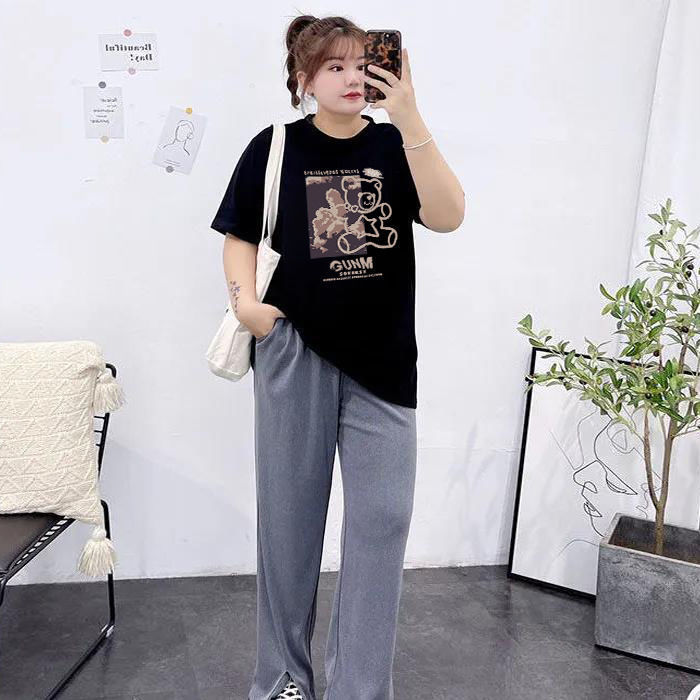 300斤特大码240斤适合胖女人穿的遮肚显瘦200斤上衣女宽松短袖t恤