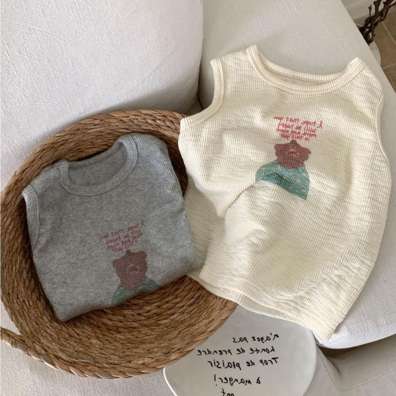 女童夏装背心宝宝洋气儿童个性潮牌韩版文艺卡通坑条外穿内搭上衣