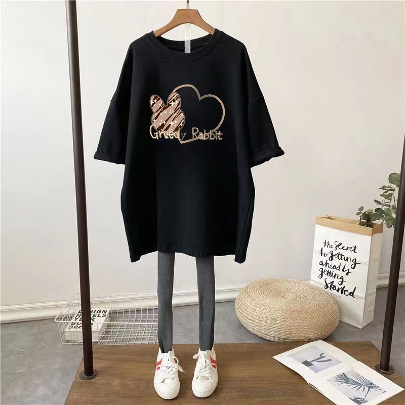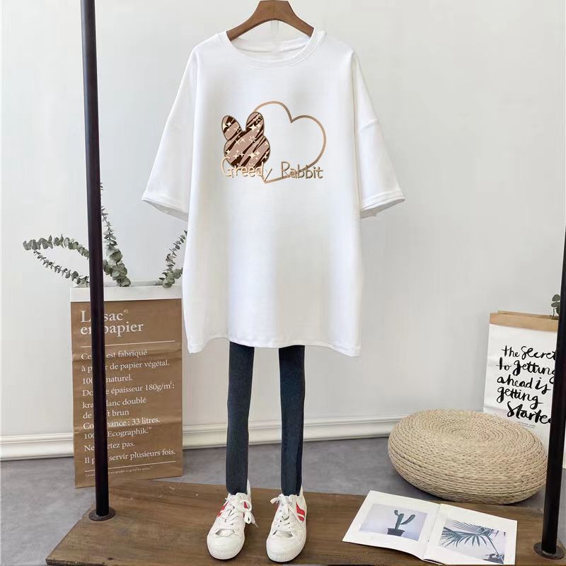 胖mm大码300斤新款纯棉中长款宽松短袖t恤女孕妇妈妈夏季洋气上衣