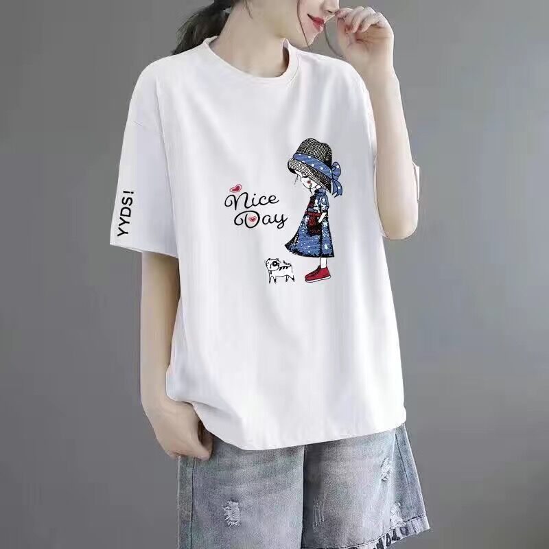 女童短袖T恤夏季新款卡通印花中大童夏装女孩洋气儿童装半袖上衣
