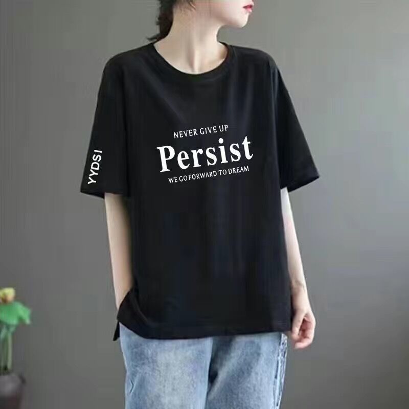 特大码300斤美式复古短袖T恤女夏季新款印花水洗做旧宽松上衣