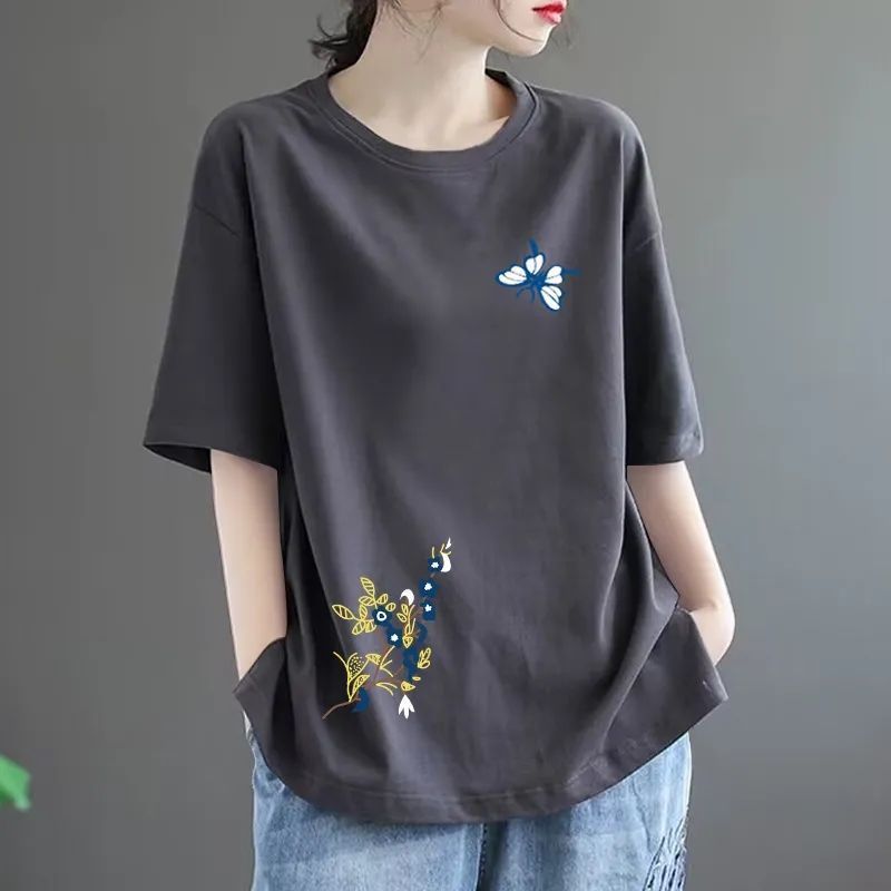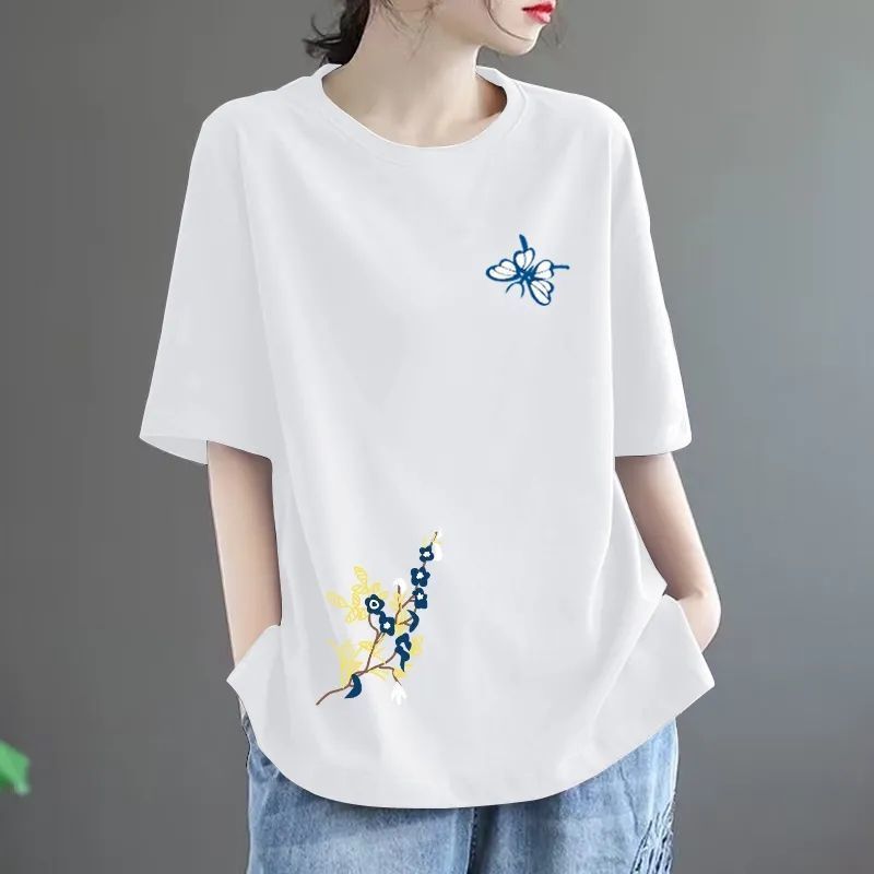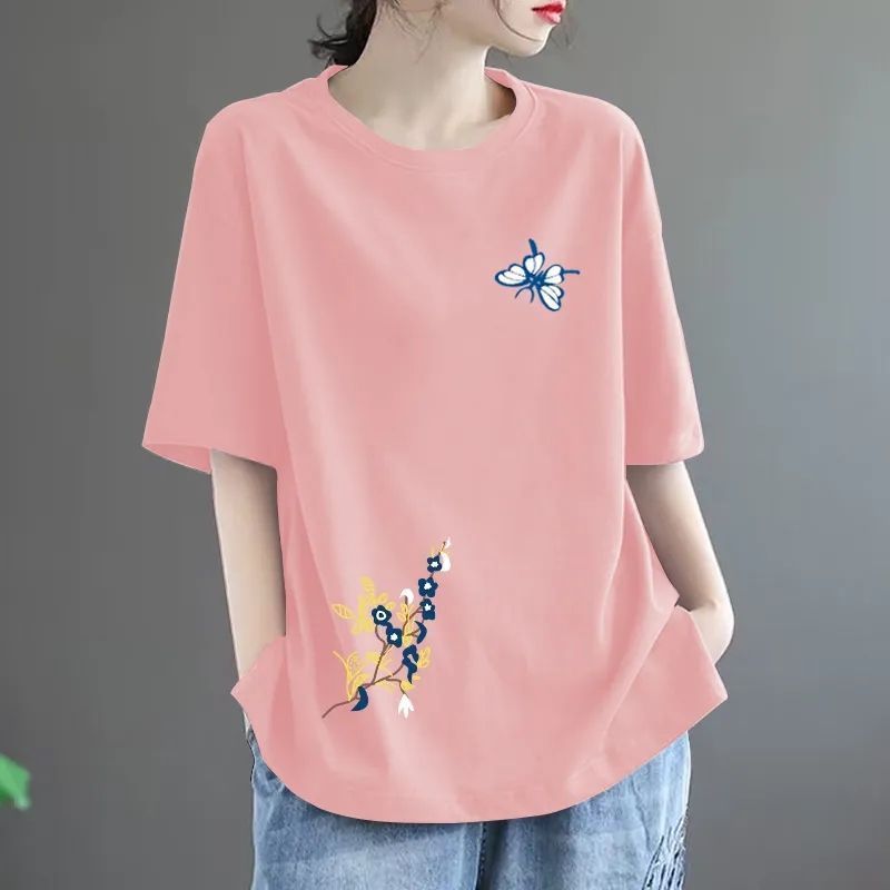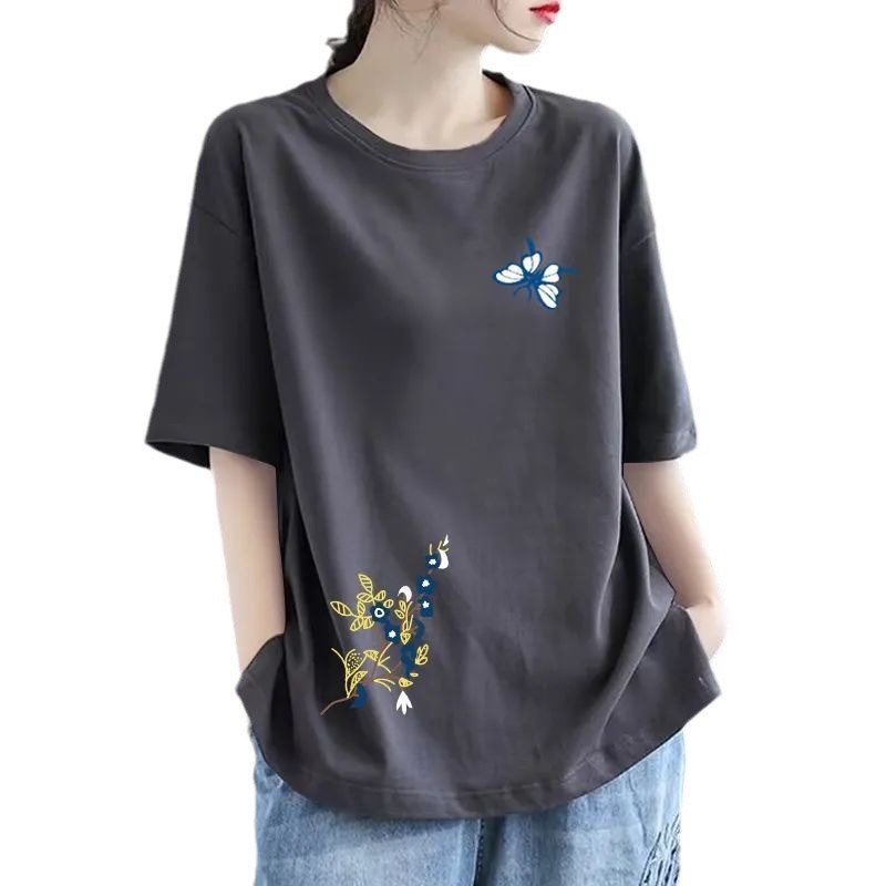 加肥大码女装200斤胖mm夏季新中式纯棉宽松显瘦300斤女士t恤短袖
