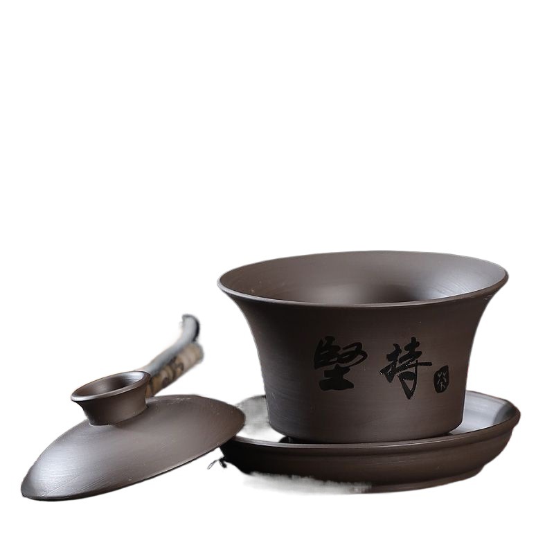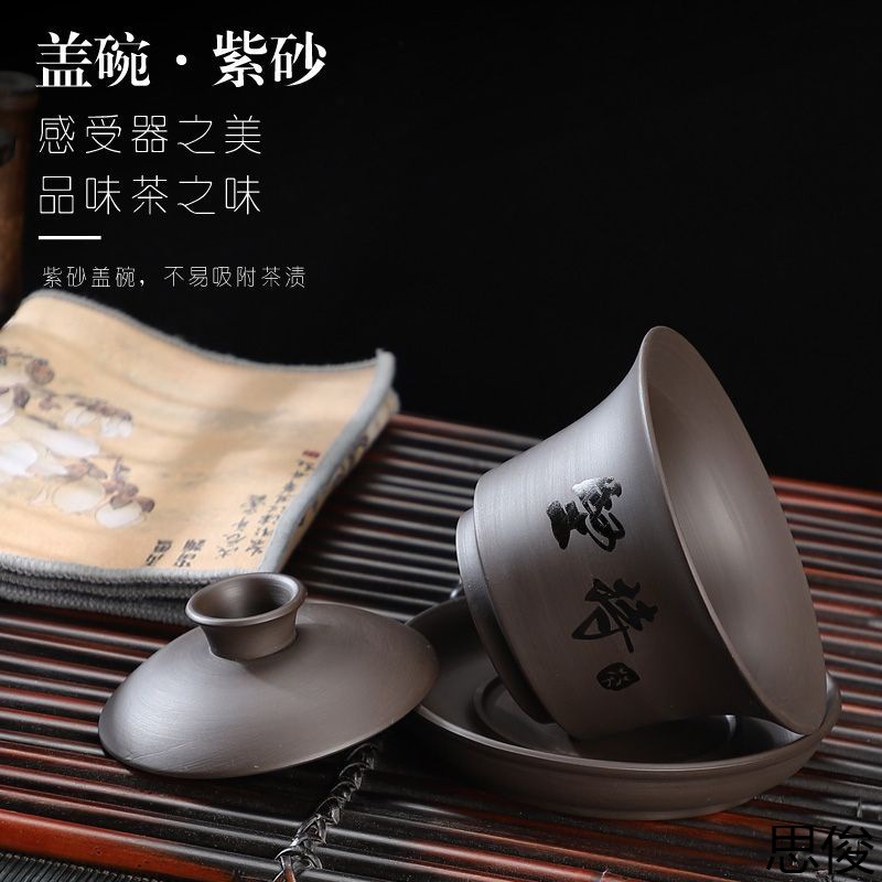- 紫砂兰花盖碗【禅茶一味】150ml