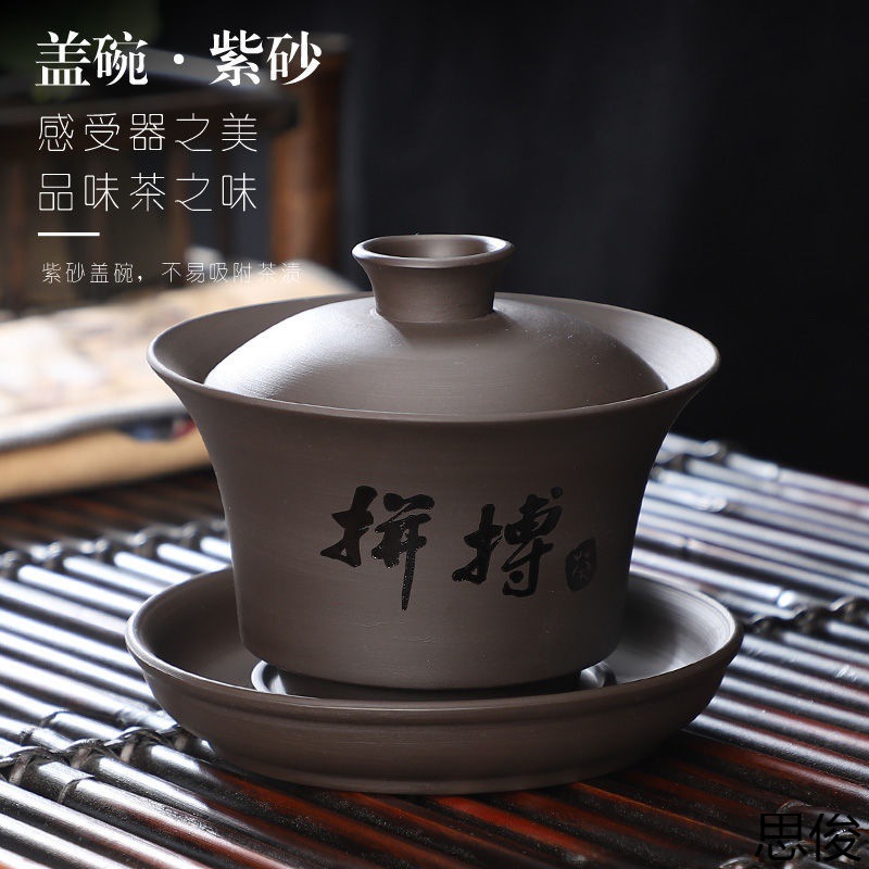 三才盖碗功夫茶具家用茶碗紫砂碗泡茶大号陶瓷盖碗套装带盖冲泡器