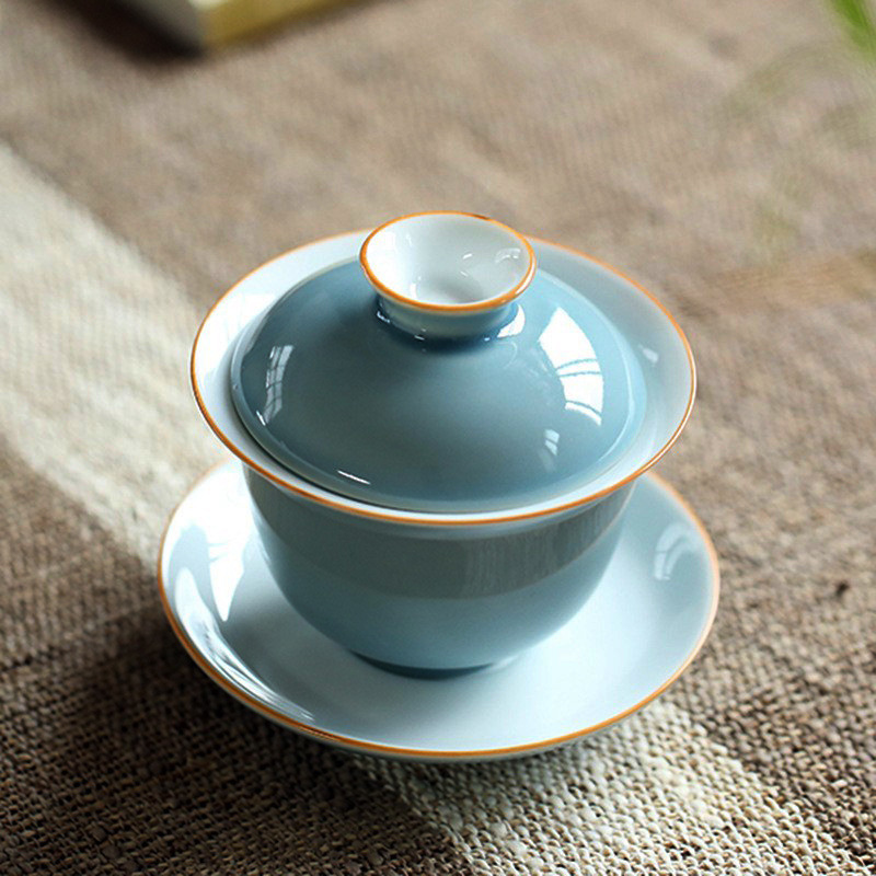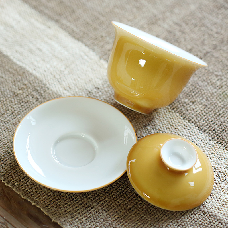 德化黄色白瓷三才盖碗茶杯不烫手大号茶碗功夫陶瓷茶具敬茶杯