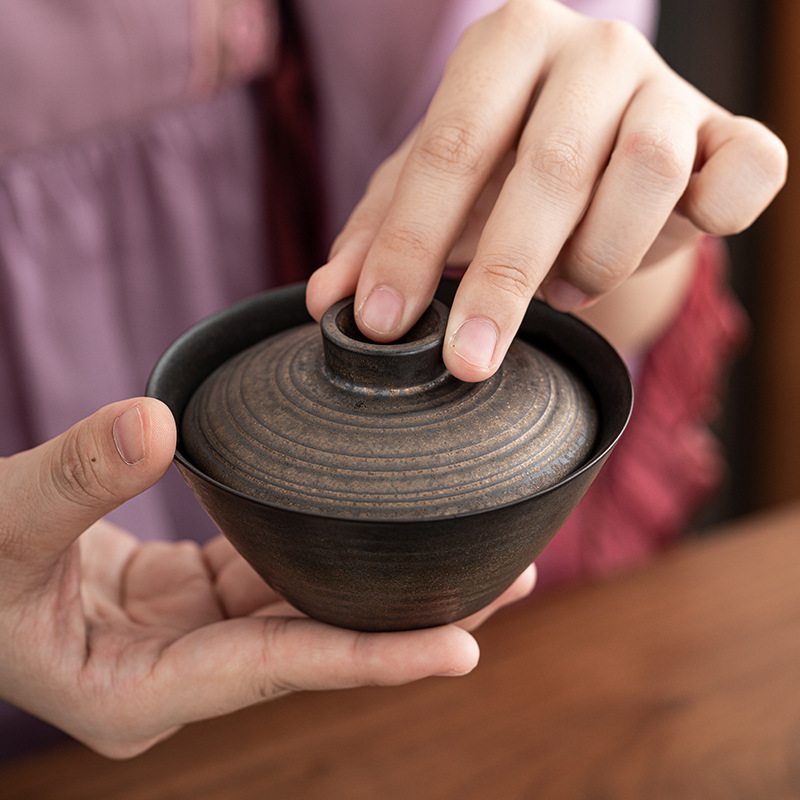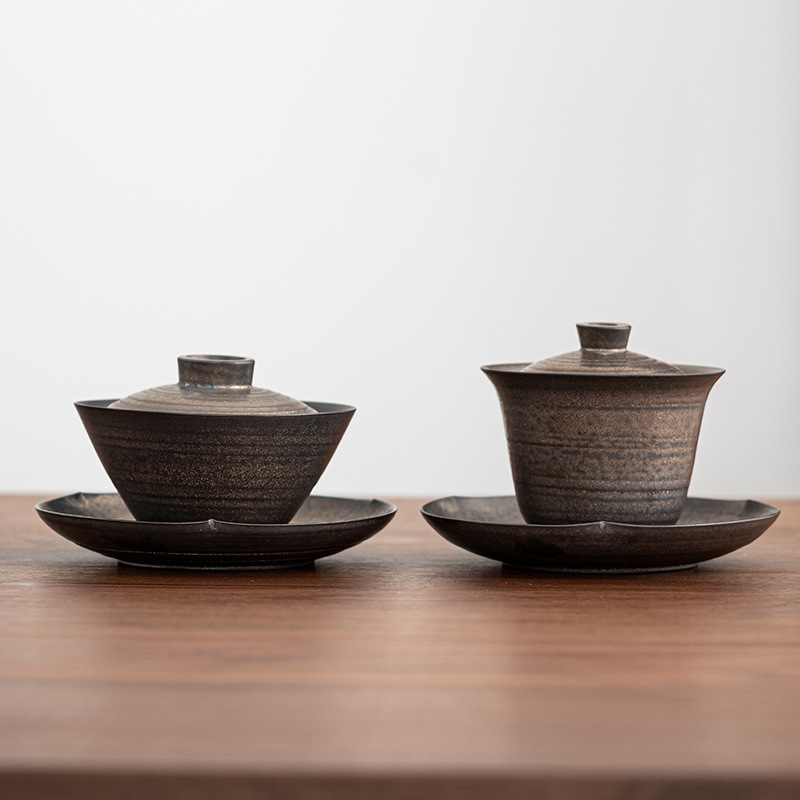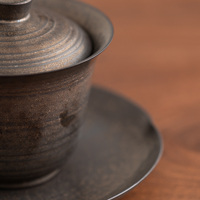 鎏金釉盖碗纯手工薄胎手拉金属釉盖碗粗陶茶壶 鎏金泡茶碗