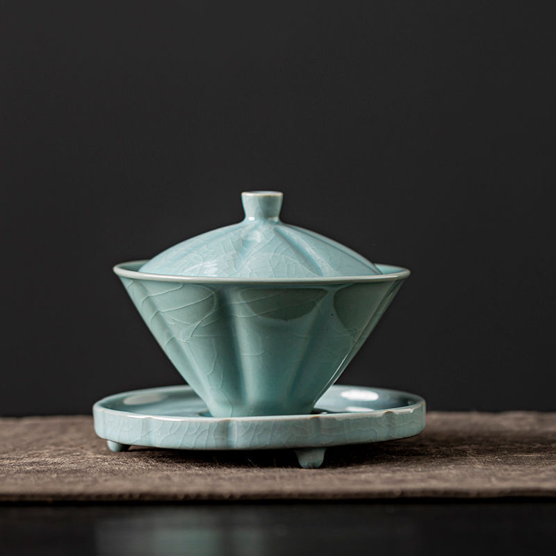 陶瓷三才斗笠盖碗茶盖碗功夫茶具茶杯单个泡茶汝窑大号茶碗家用