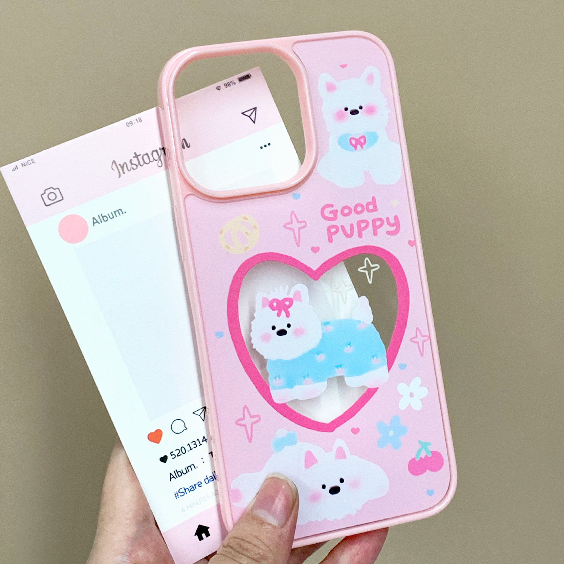 西高地狗狗13promax手机壳15苹果14保护套7plus爱心xs镂空11粉色x
