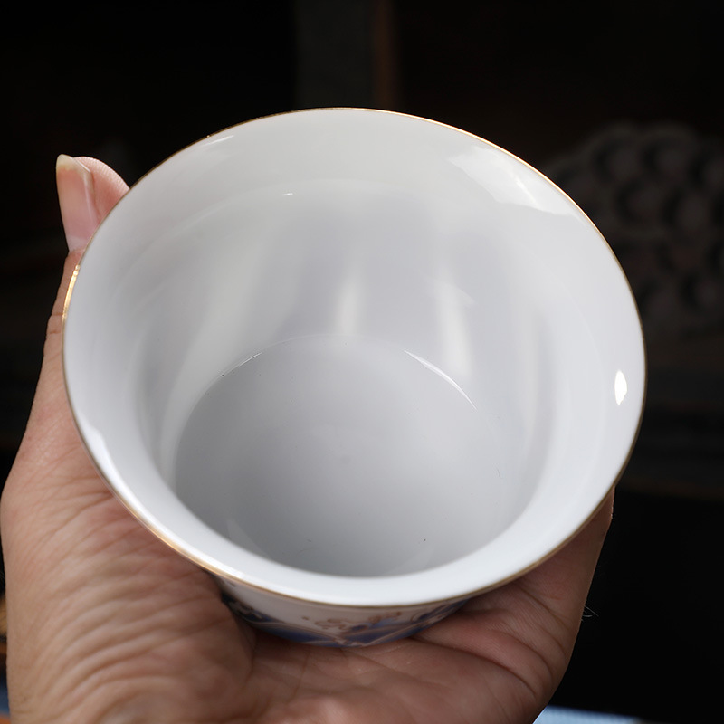 景德镇陶瓷大号三才碗泡茶杯珐琅彩描金盖碗壶承白瓷功夫茶具套装