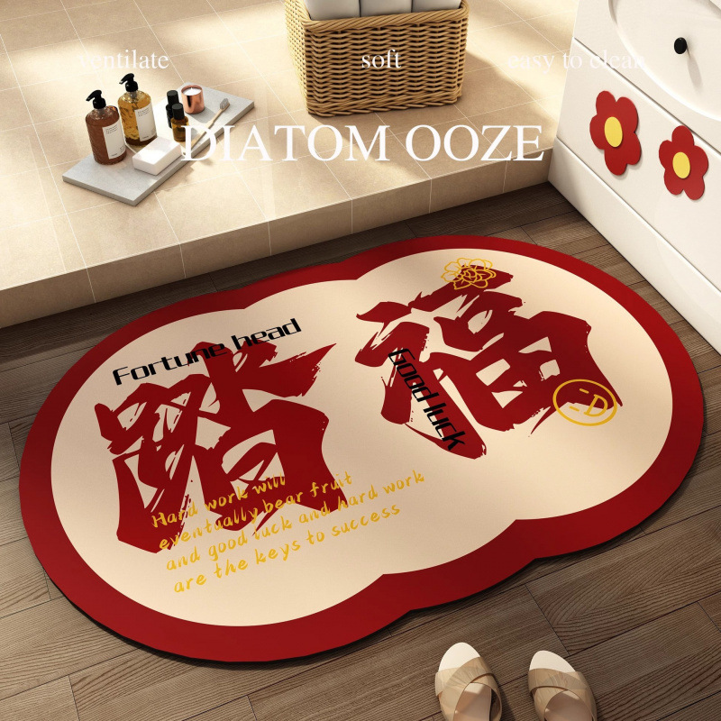喜庆硅藻泥地垫浴室吸水脚踏垫卫生间速干防滑垫耐脏易打理进门垫