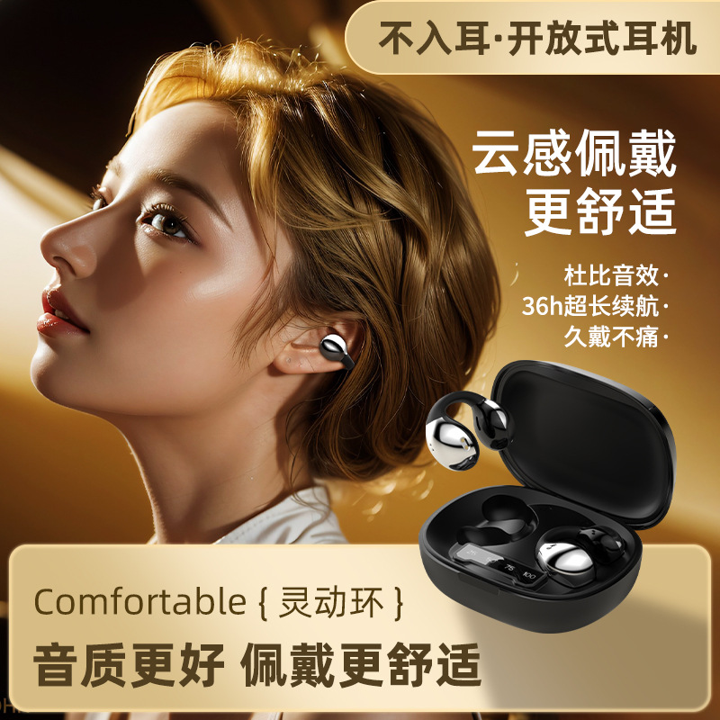 跨境私模新款蓝牙耳机耳夹式不入耳双耳适用苹果华为