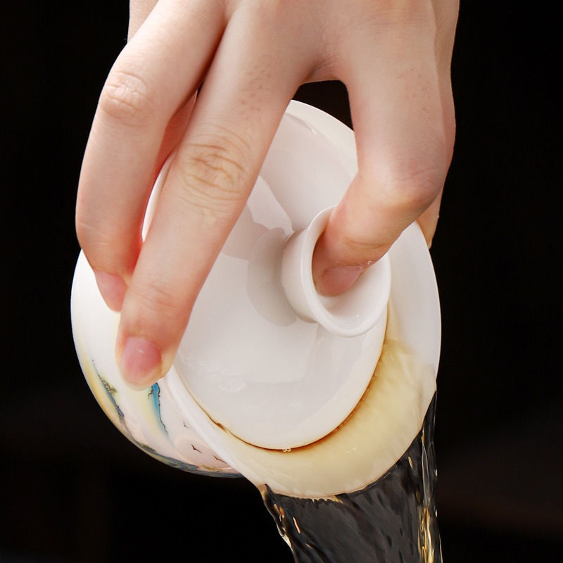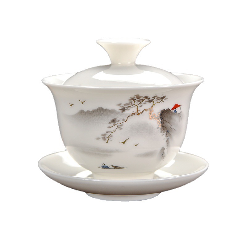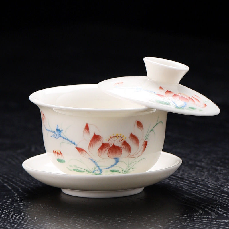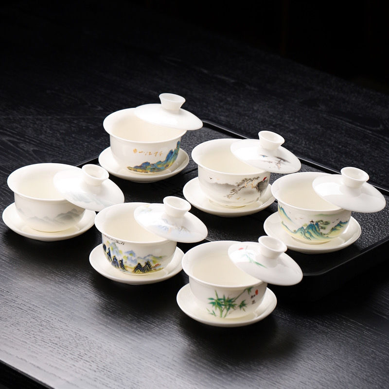 悬停盖碗羊脂玉三才德化简约办公茶杯家用功夫茶具高档茶碗客厅