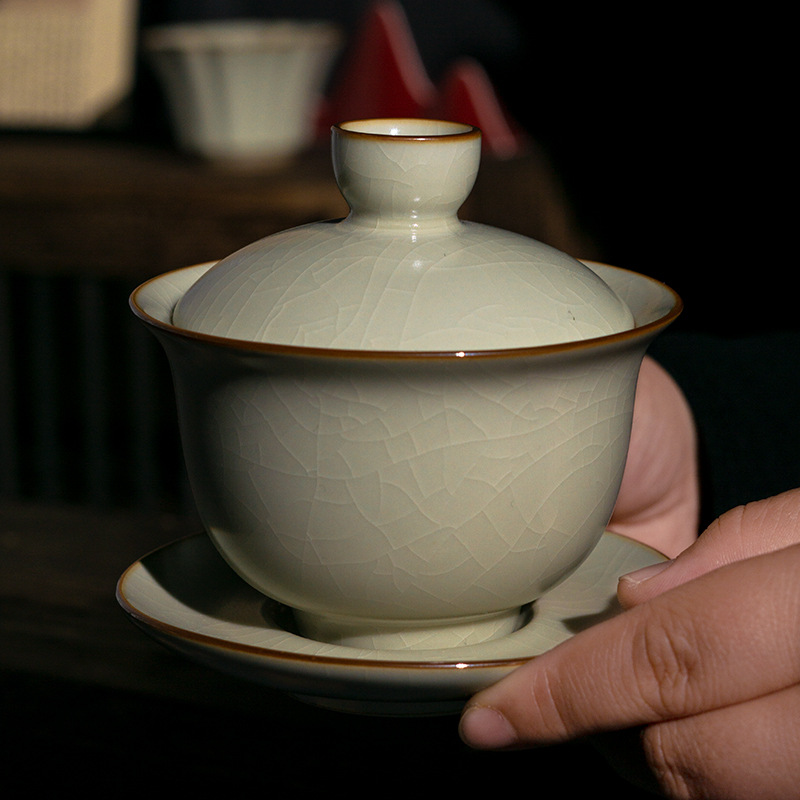 汝窑三才盖碗开片可养单个高档泡茶碗大号带盖家用功夫茶具喝茶碗