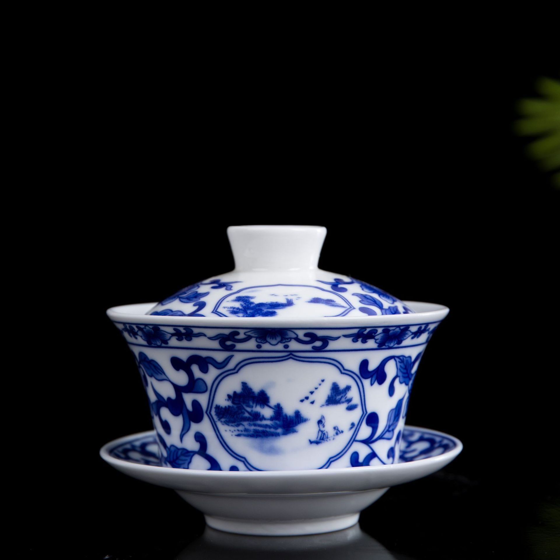 景德镇陶瓷茶具大号青花盖碗八宝茶碗三件套敬茶杯高档三才杯