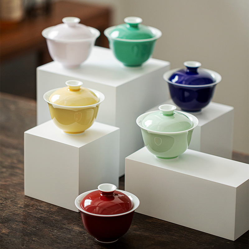 原矿色釉盖碗薄胎玉泥陶瓷茶具茶碗家用简约功夫茶具盖碗