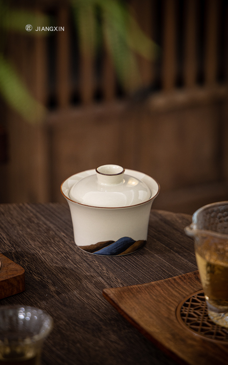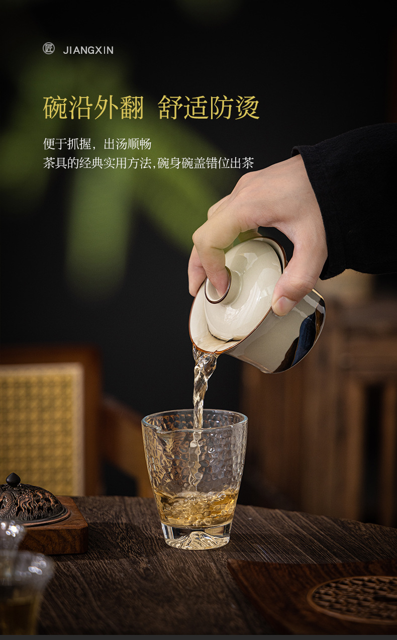 可悬停旋转盖碗山山而川泡茶不烫手茶具功夫碗