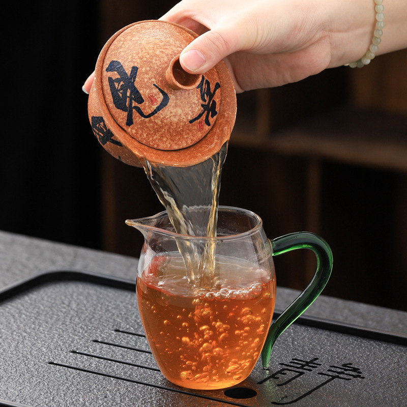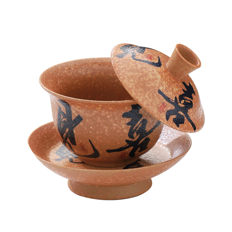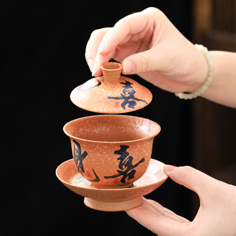 悬停旋转原矿粗陶三才盖碗中式复古火石红功夫茶具盖碗泡茶碗