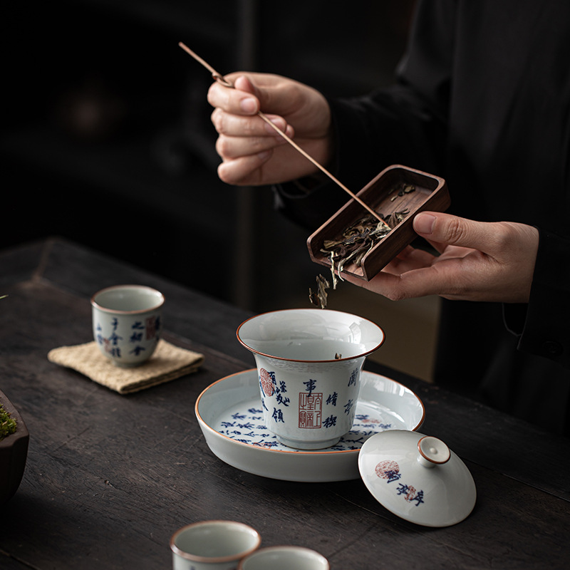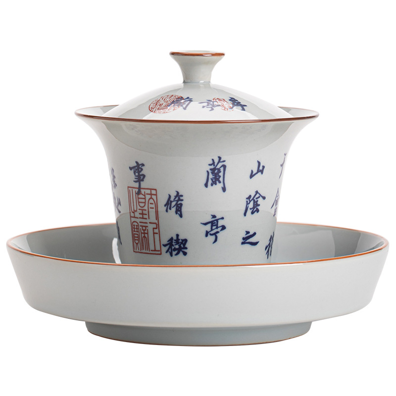 兰亭序盖碗茶杯陶瓷茶壶三才盖碗单个家用泡茶碗带盖功夫茶具套装