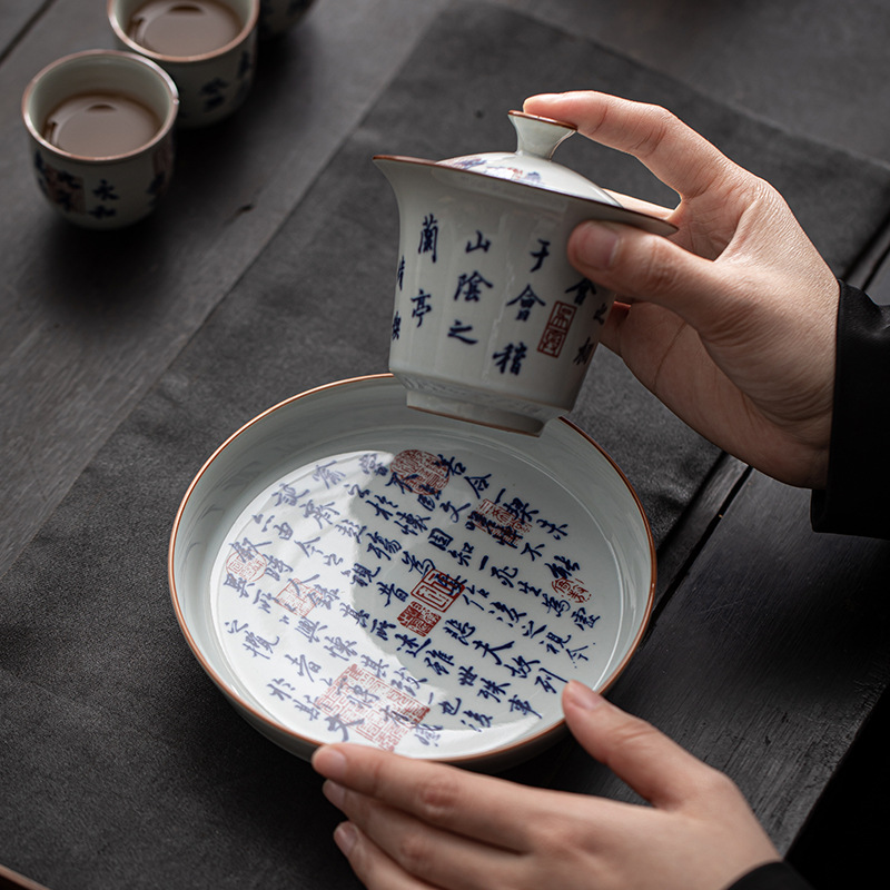 兰亭序青花盖碗+壶承