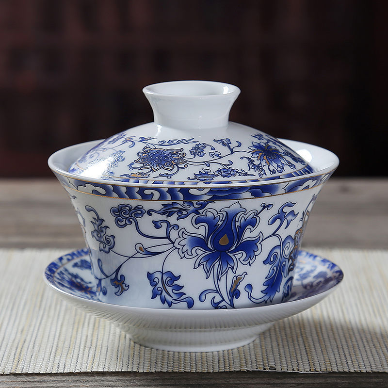 青花瓷盖碗茶杯大号白瓷陶瓷功夫茶具套装三才敬茶碗泡茶壶单个