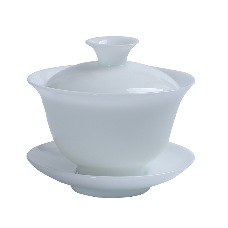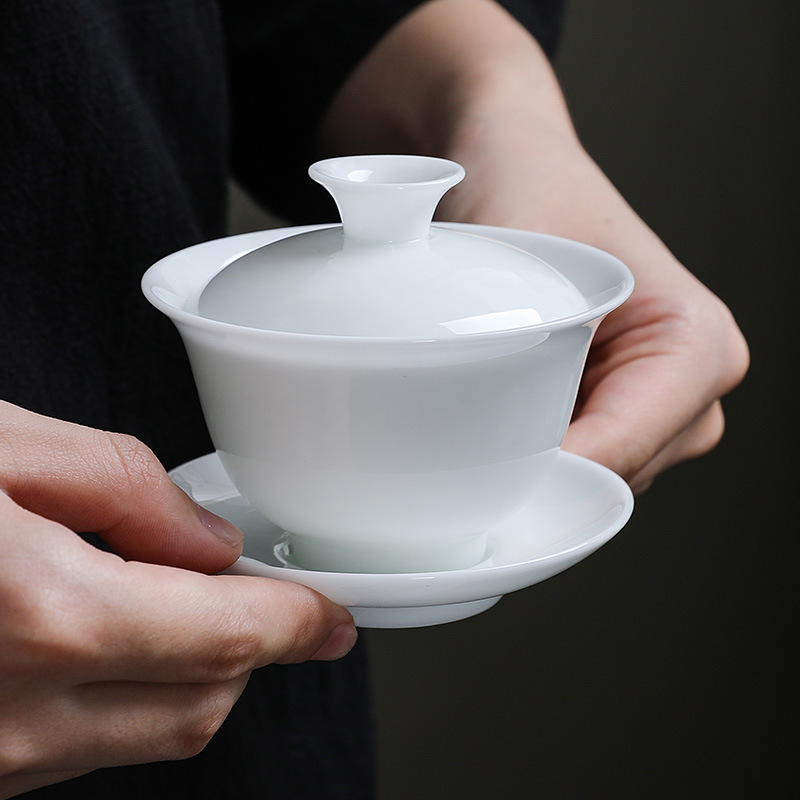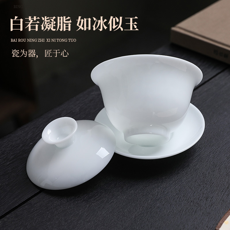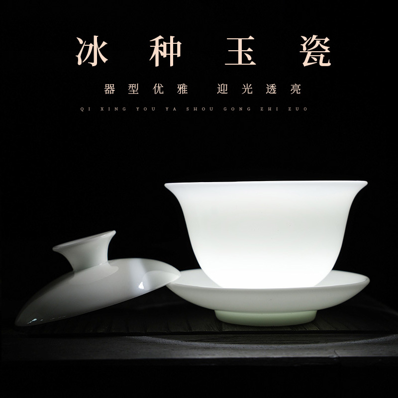 冰种玉瓷三才盖碗单个家用简约陶瓷大小号泡茶碗茶杯白瓷功夫茶具