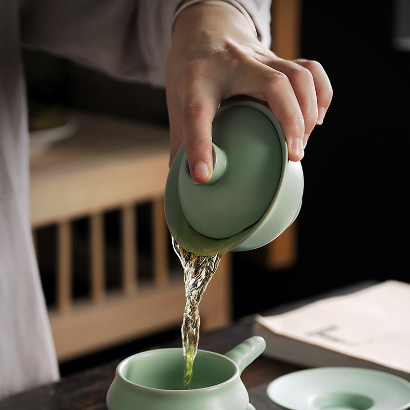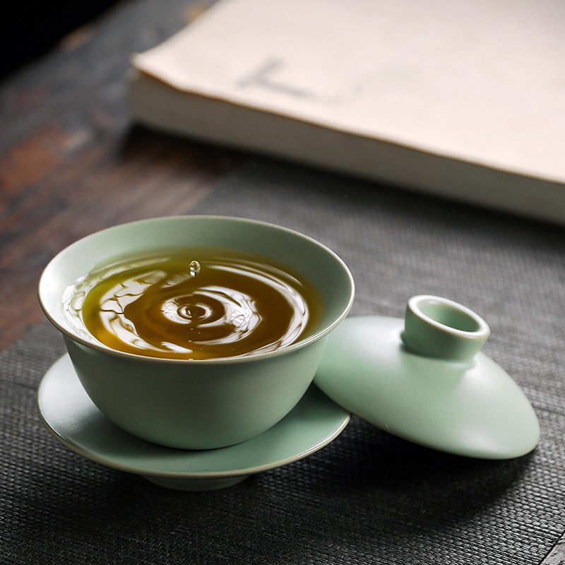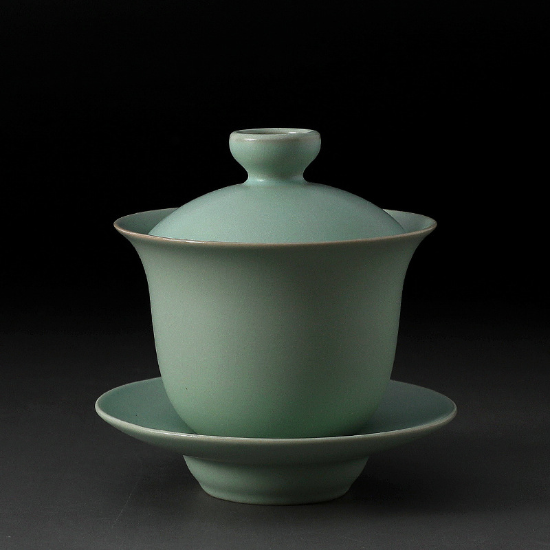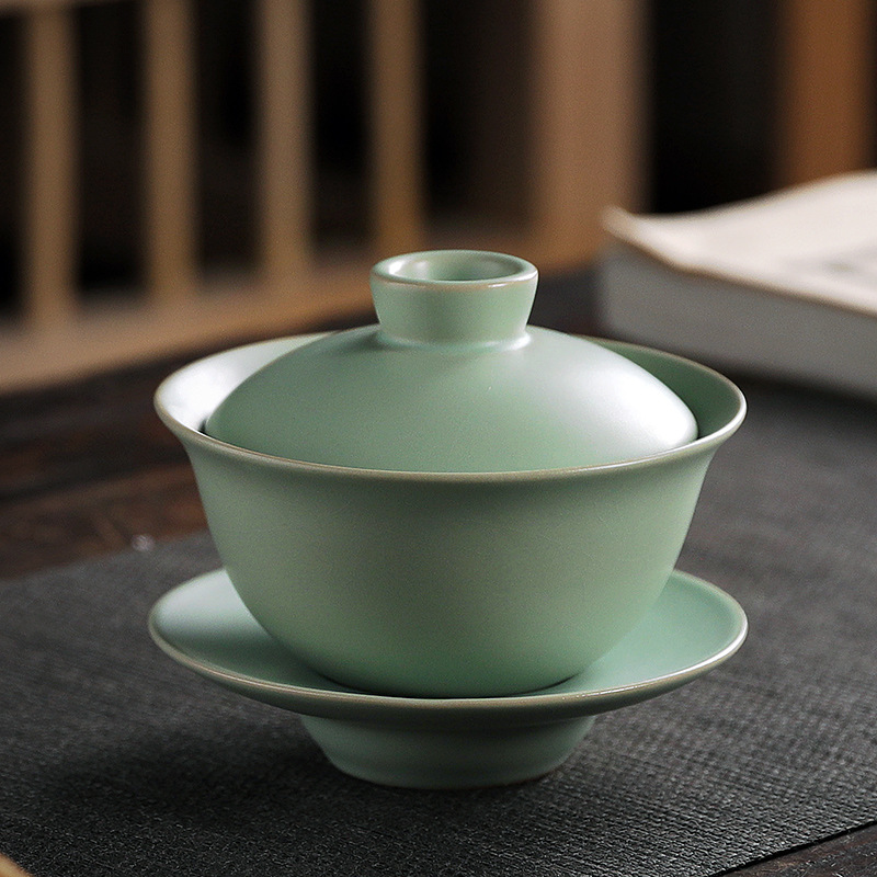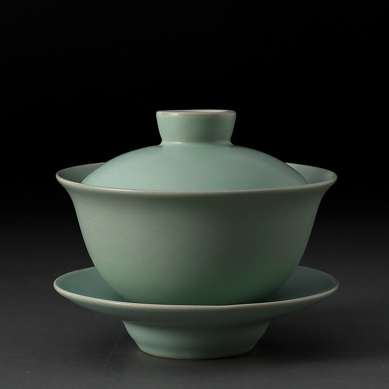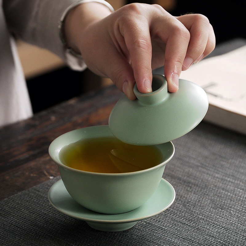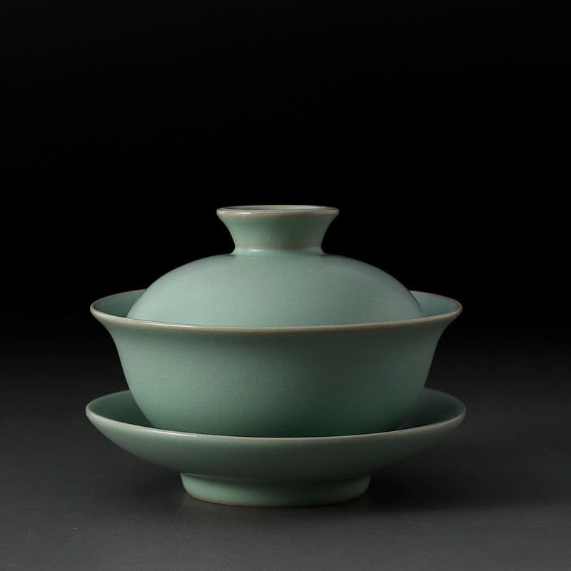 天青汝窑盖碗 可开片刻养泡茶杯单个三才盖碗简约家用功夫茶具