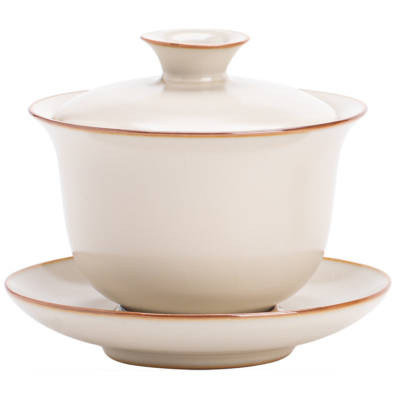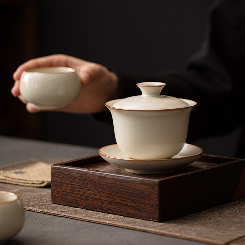汝窑米黄三才盖碗陶瓷茶碗茶杯茶壶茶艺喝茶泡茶工具家用功夫茶具