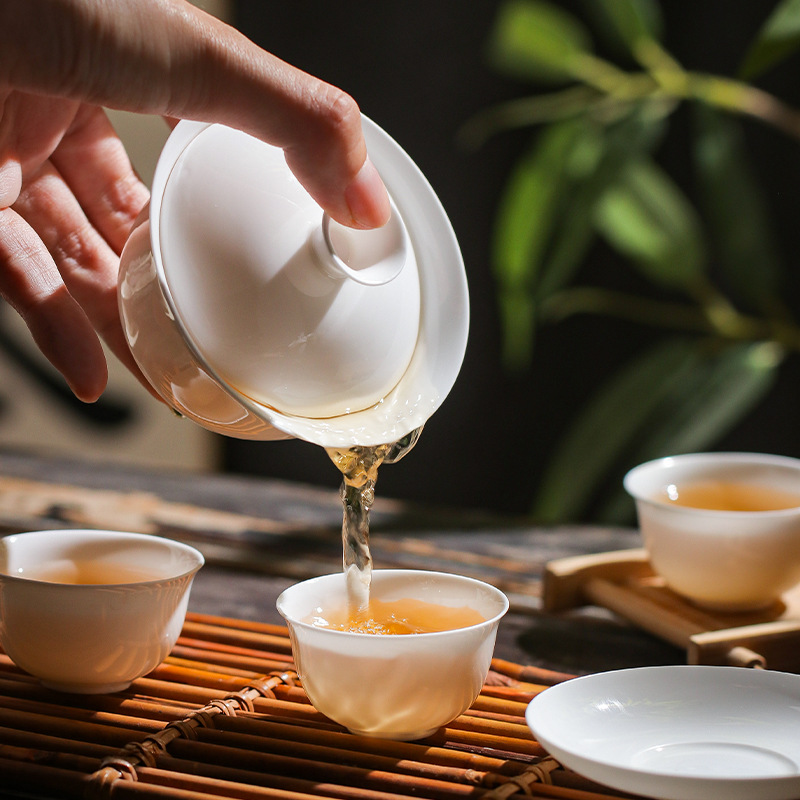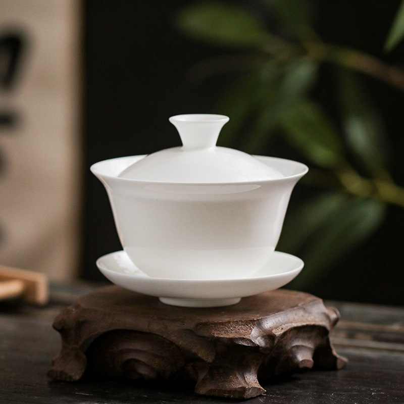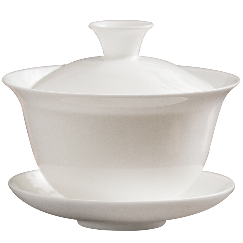 薄胎盖碗单个高档陶瓷功夫茶具套装骨瓷茶杯白瓷带盖三才大号