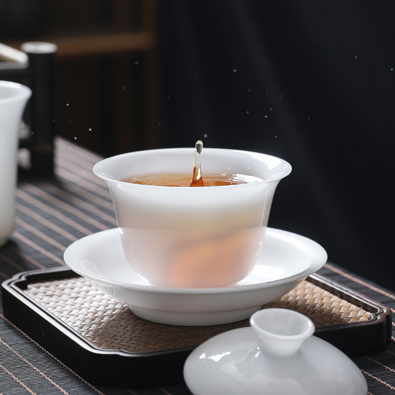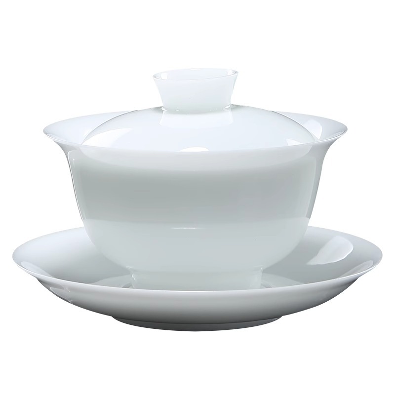 羊脂玉冰种玉瓷三才盖碗高档白瓷茶杯陶瓷大号泡茶碗功夫茶具