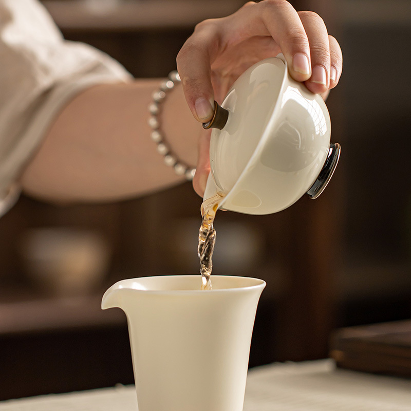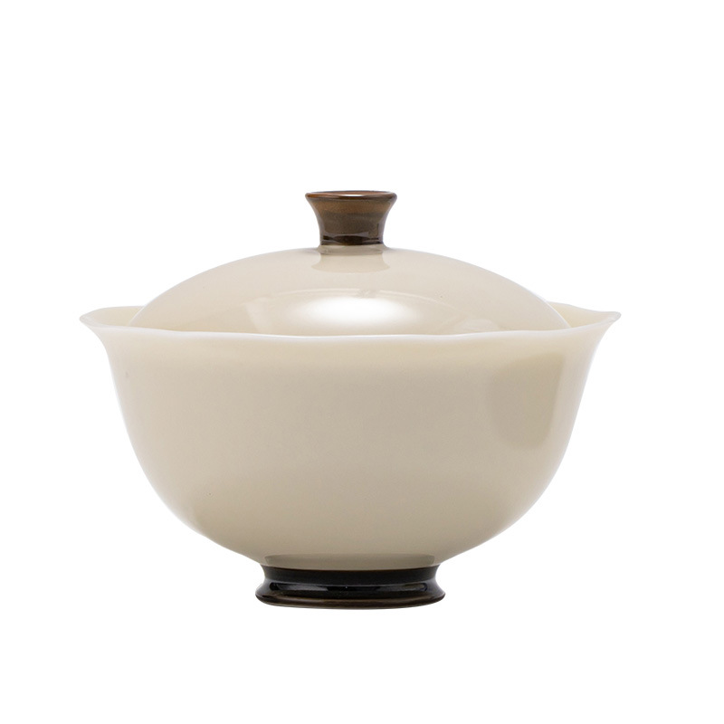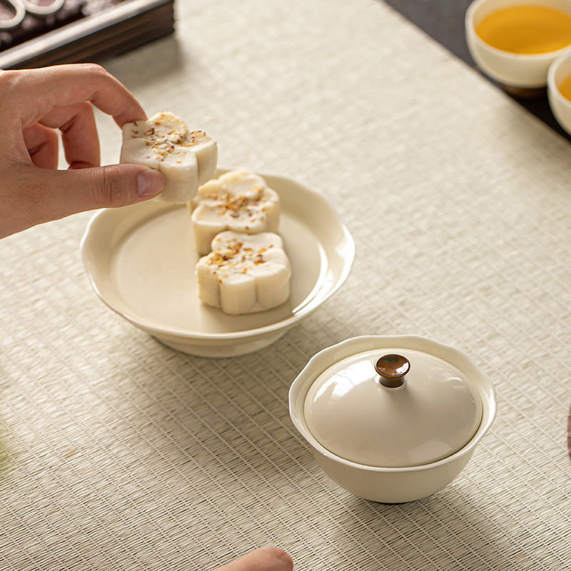 定窑薄胎盖碗工夫茶具泡茶碗手工陶瓷复古简约茶碗壶承茶点盘果盘