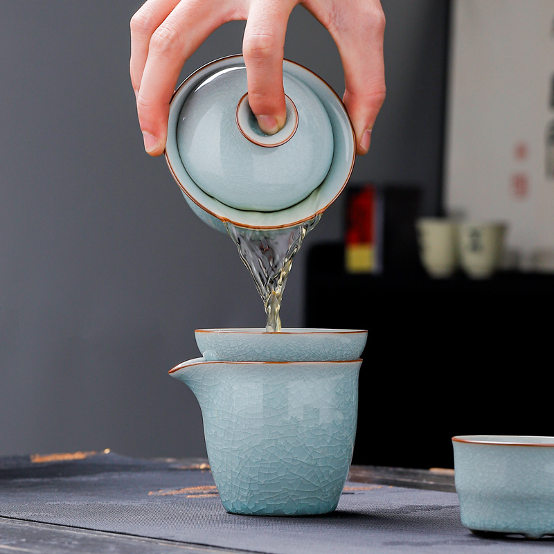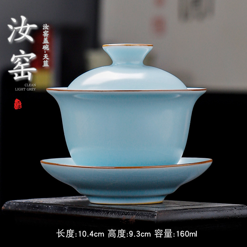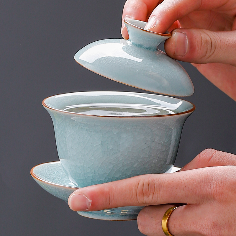 冰花三才盖碗汝窑陶瓷开片可养泡茶大容量防烫功夫茶具