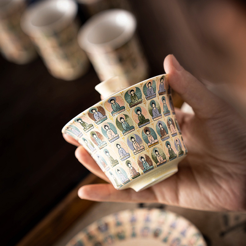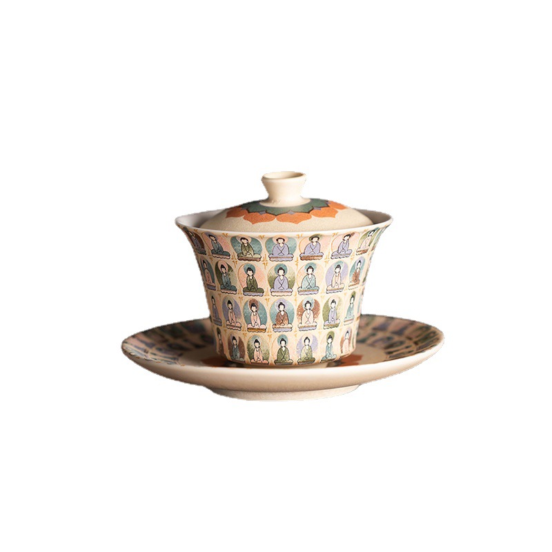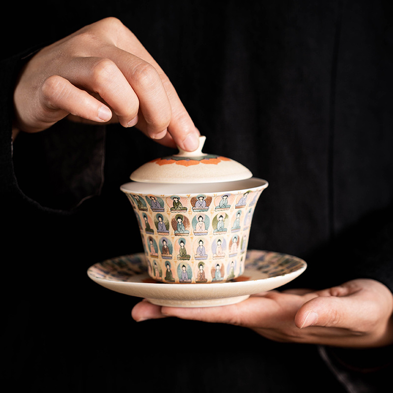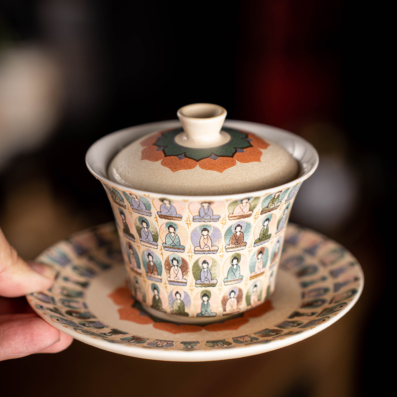 三才盖碗单杯家用莫高窟千佛禅意功夫茶具泡茶器泡茶碗