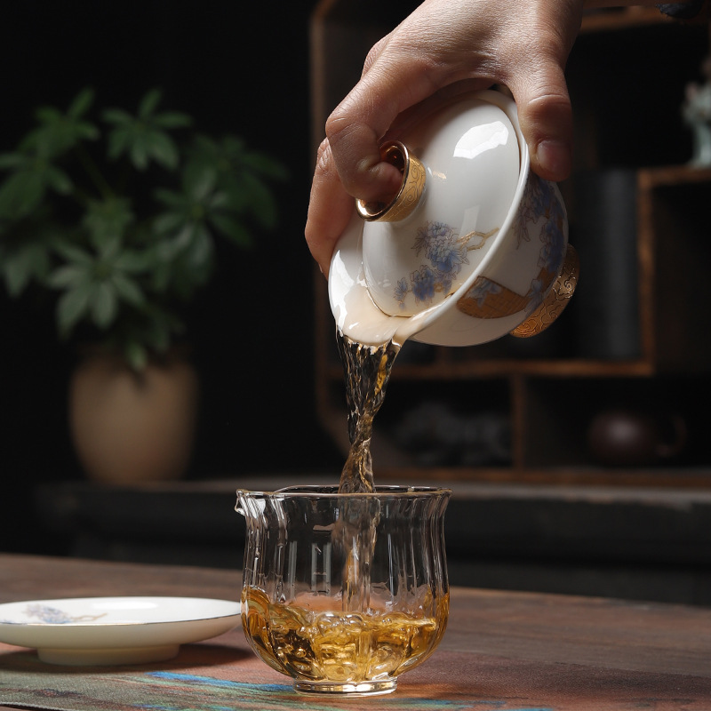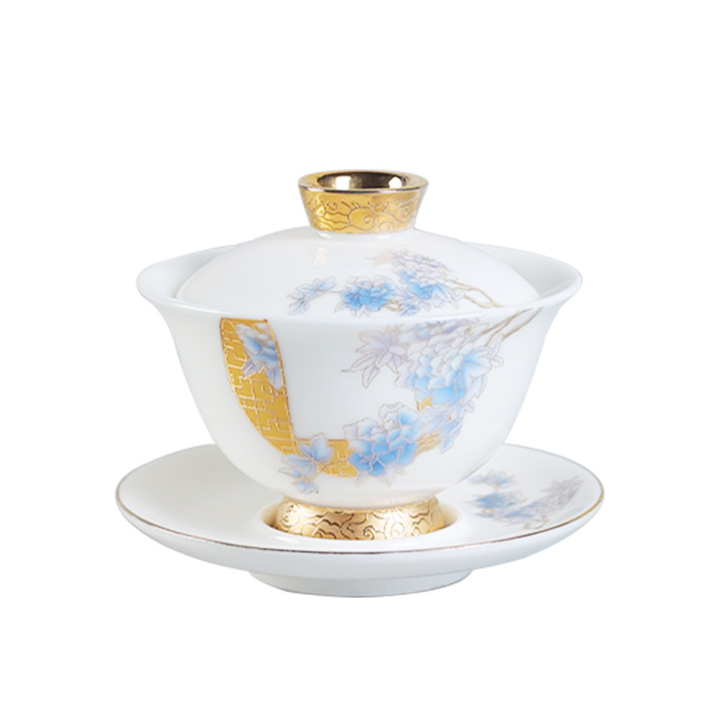 羊脂玉盖碗描金单个茶杯陶瓷大号泡茶器高档家用功夫三才盖碗
