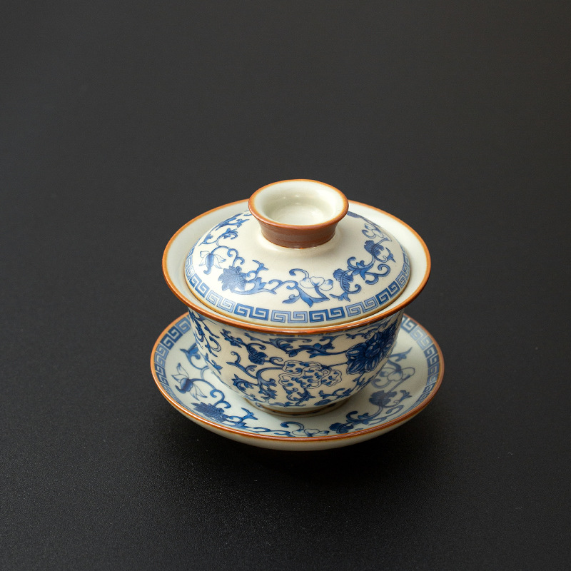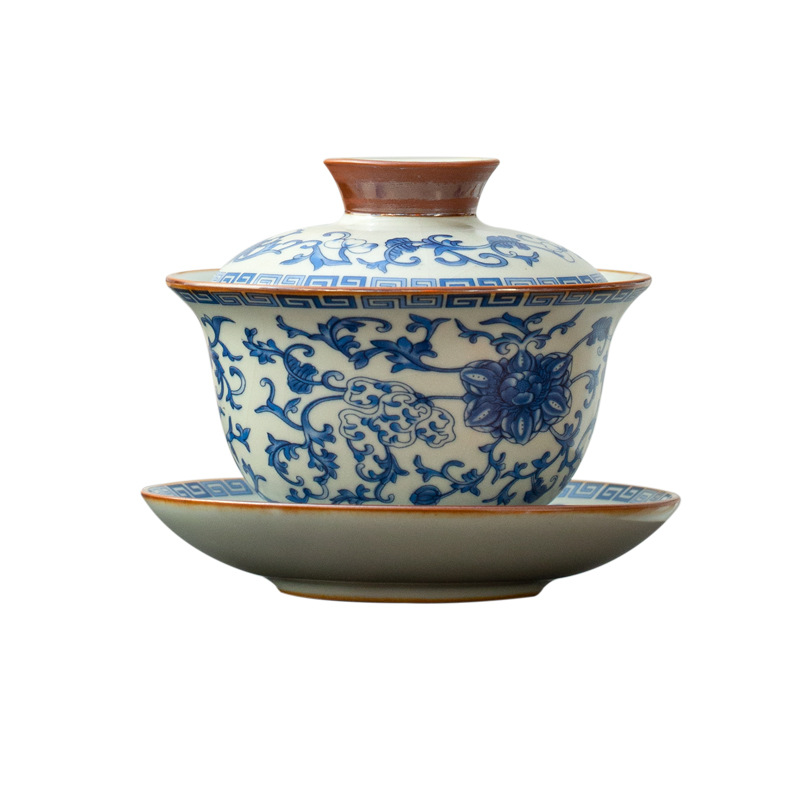青花缠枝三才盖碗【礼盒装】