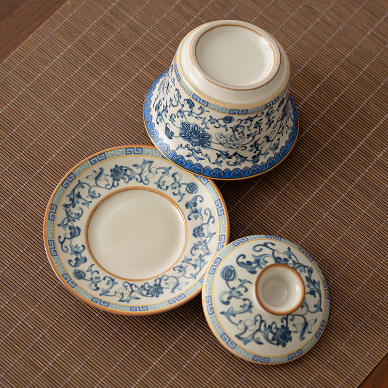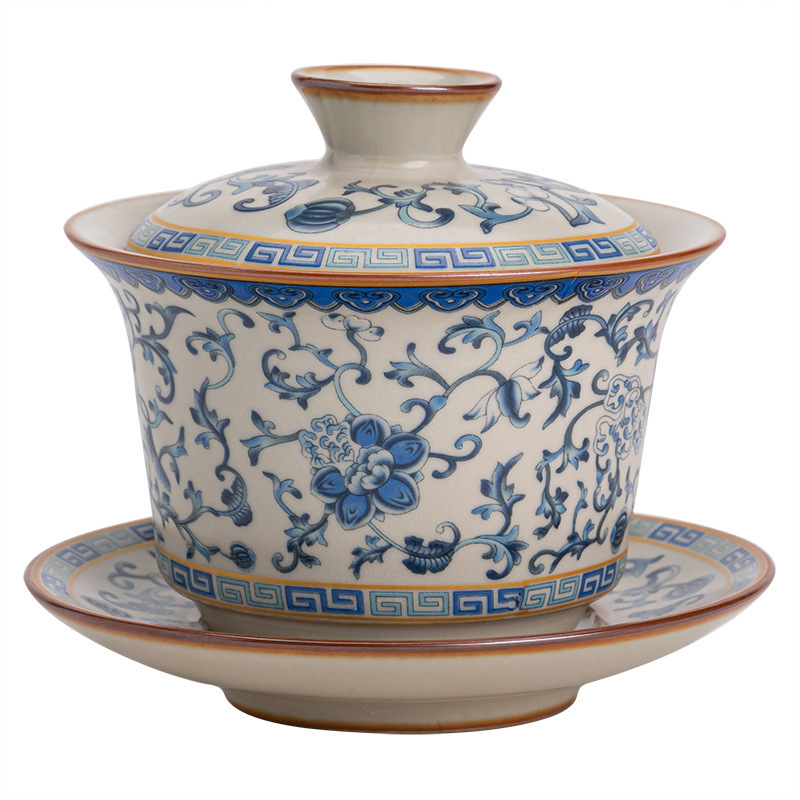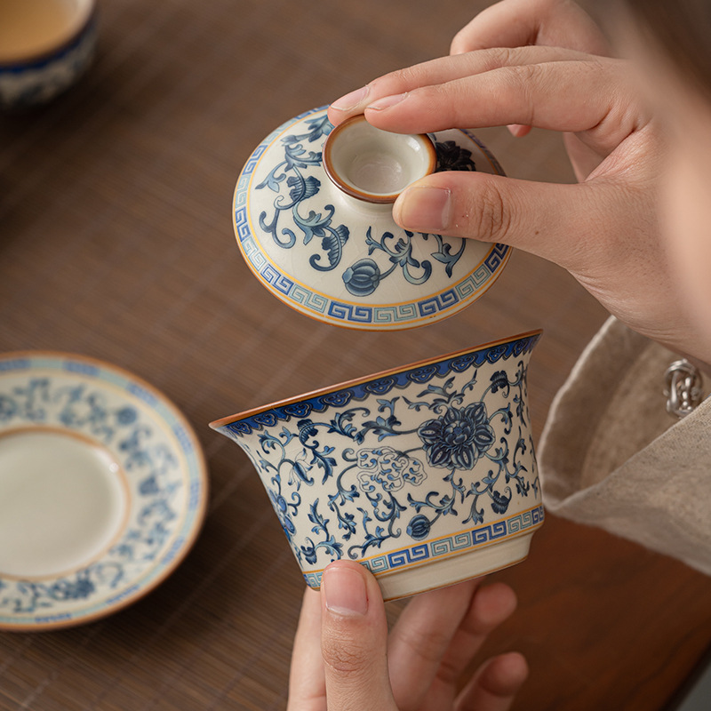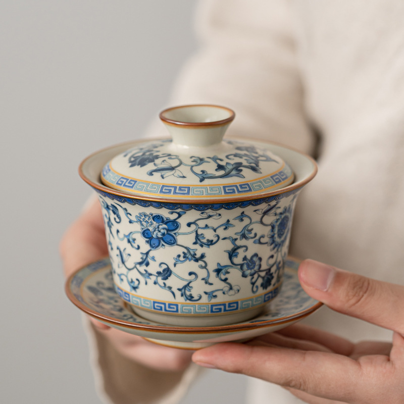 汝窑缠枝莲三才盖碗家用大号泡茶碗功夫茶具茶碗杯单个泡茶器