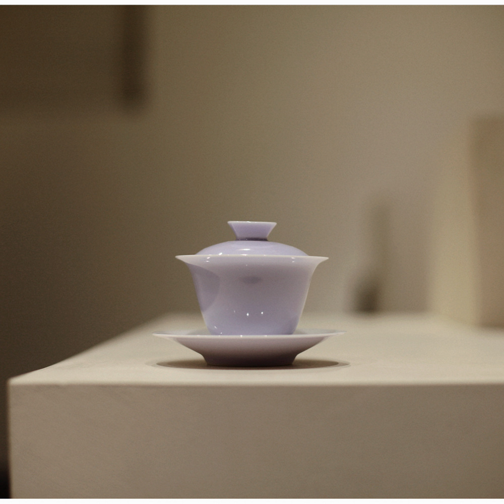 暮山手工薄胎陶瓷紫色功夫茶具三才盖碗泡茶壶单个公道杯品茗杯子