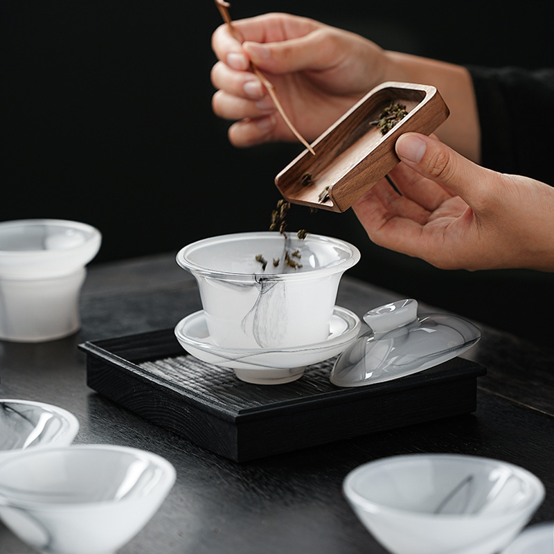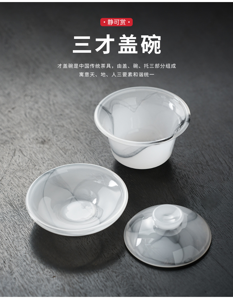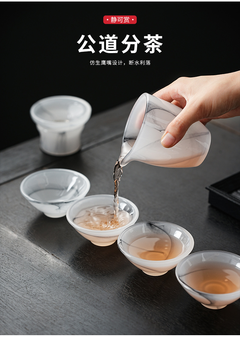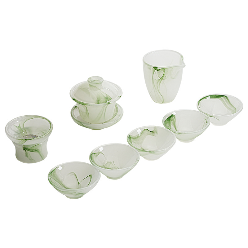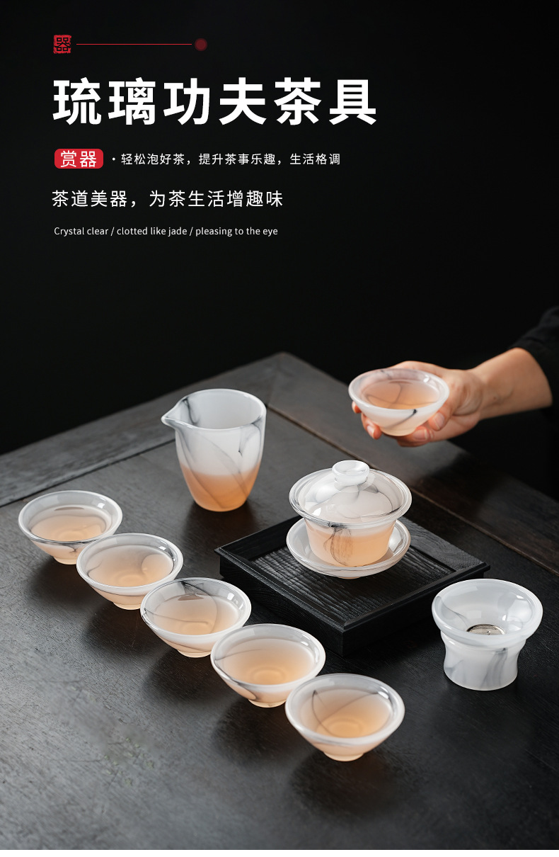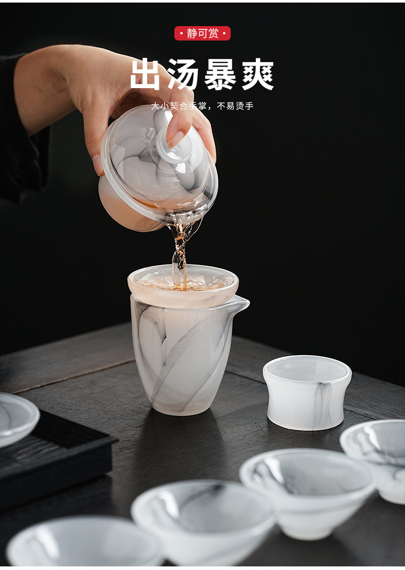 水墨琉璃茶具套装家用会客整套耐热功夫茶具盖碗公道杯茶杯