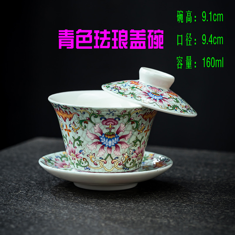 160ml青花瓷珐琅泡茶碗功夫三才盖碗陶瓷带盖茶碗