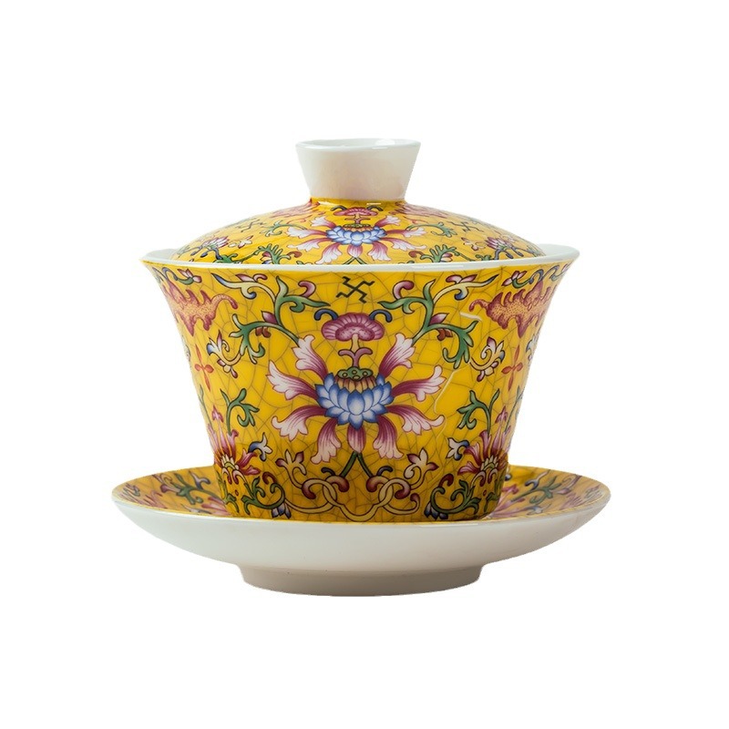 1个金色珐琅悬停盖碗