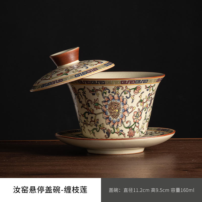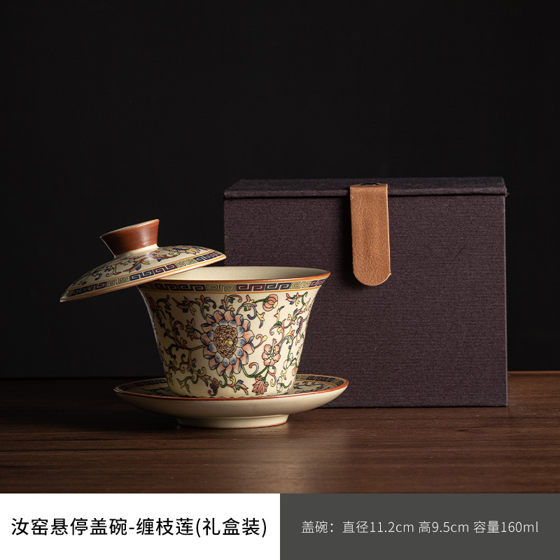 汝窑悬停盖碗-缠枝莲(礼盒装)