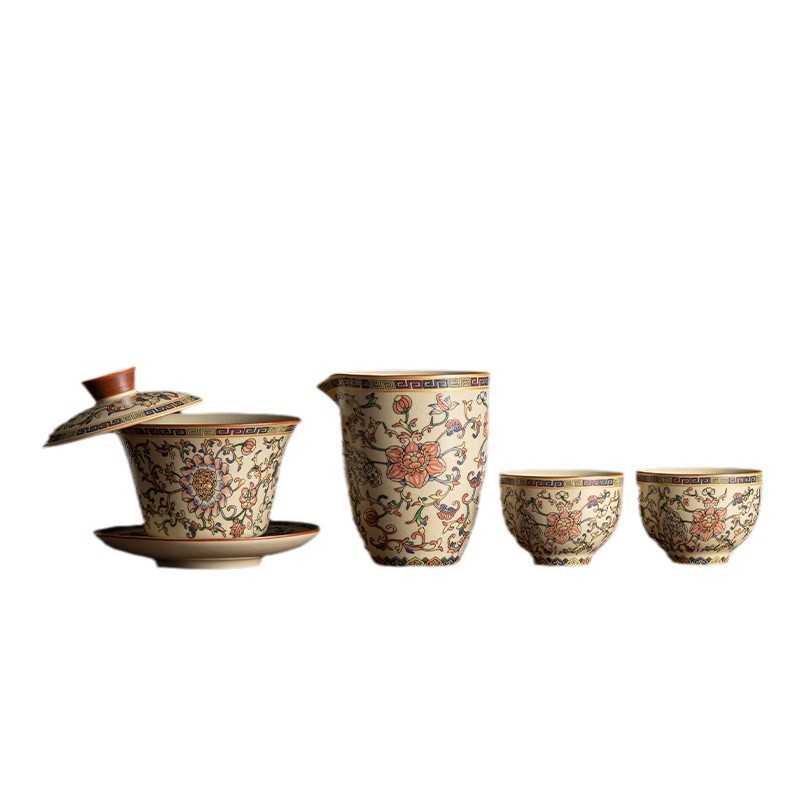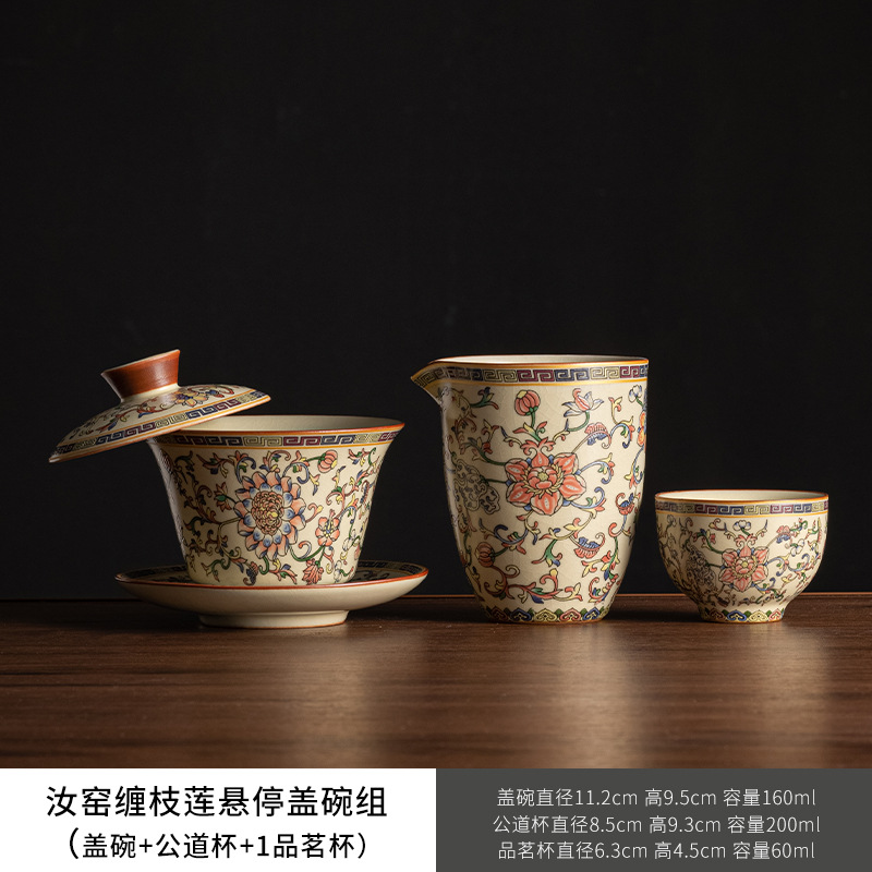 汝窑悬停盖碗+公道杯+1品茗杯-缠枝莲