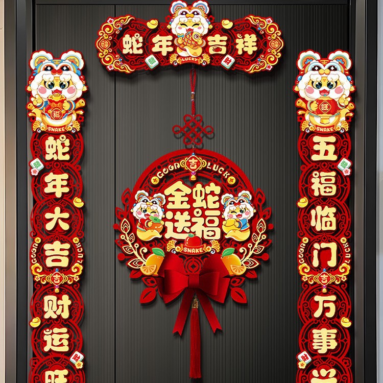 2025新款过年春节磁吸对联蛇年春联植绒家用装饰新春大门福字门贴