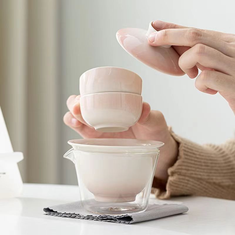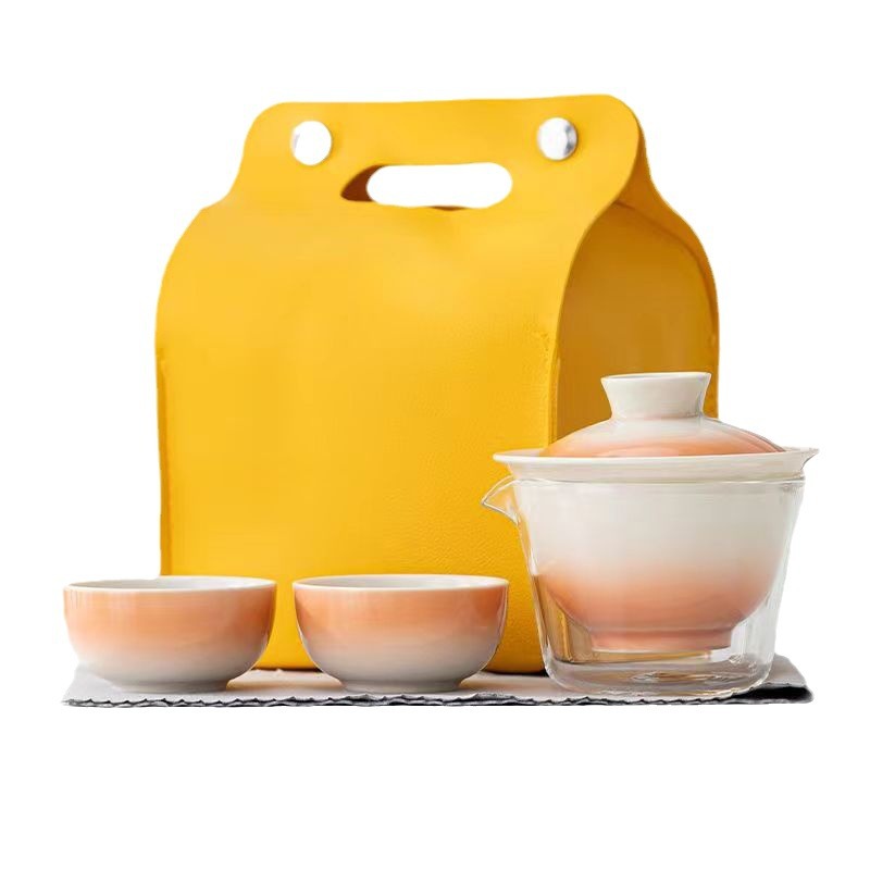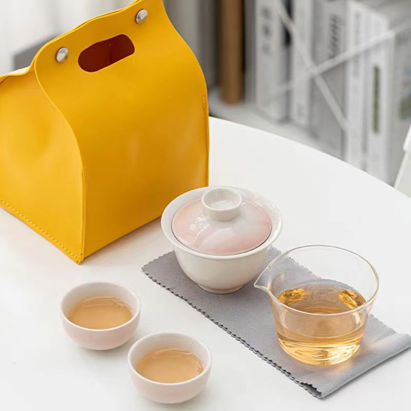 户外旅行功夫茶具套装陶瓷盖碗快客杯一壶二杯便携包露营