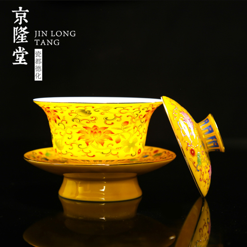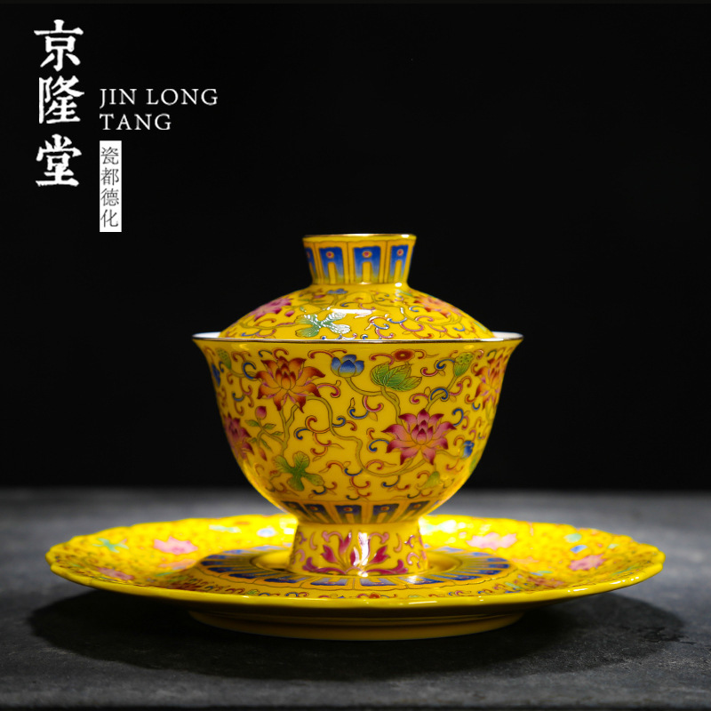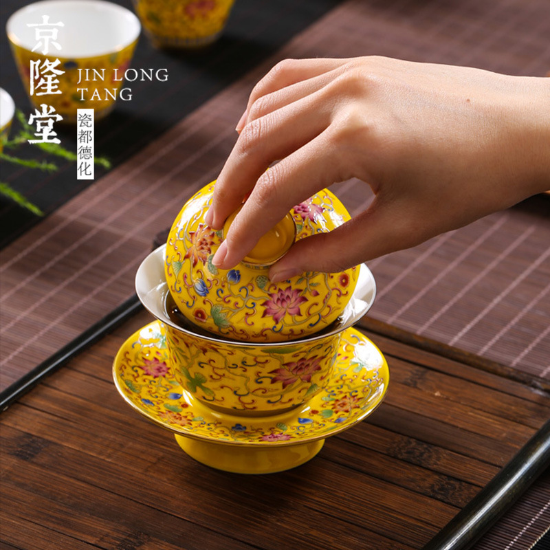 珐琅彩三才盖碗茶杯陶瓷功夫茶具小号复古茶杯家用泡茶碗