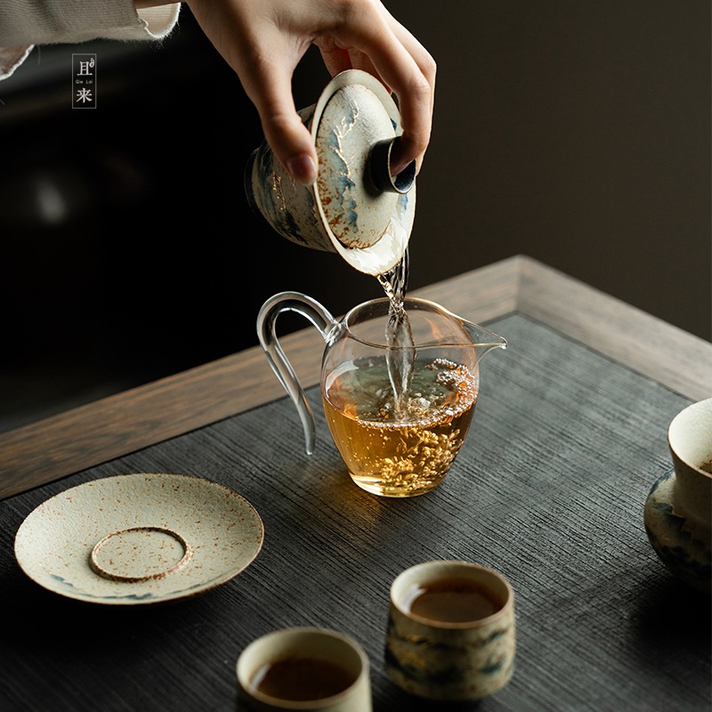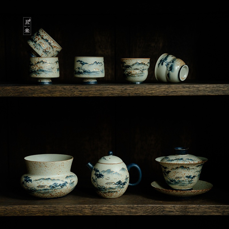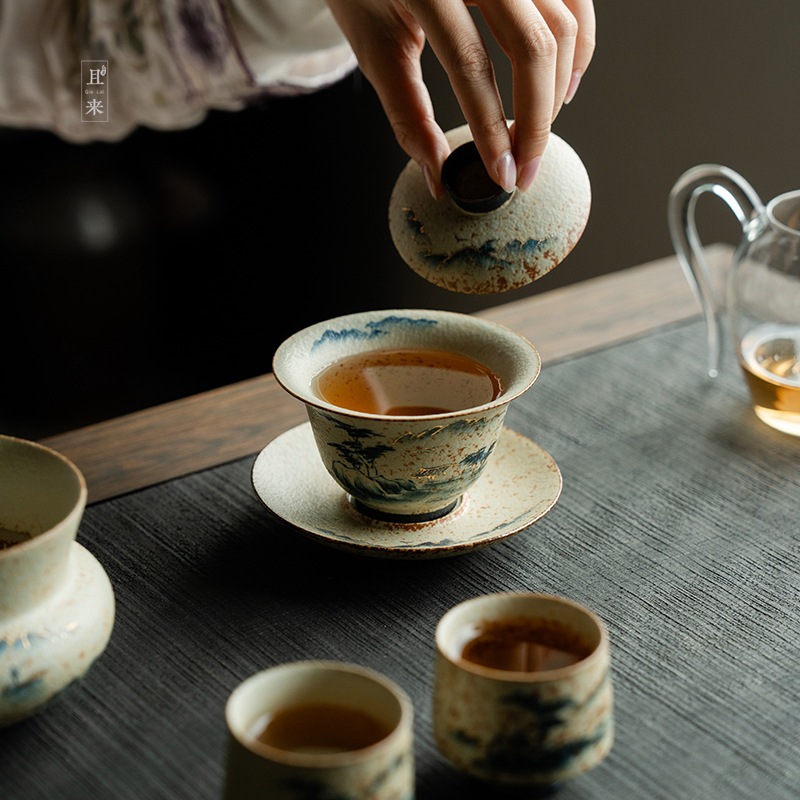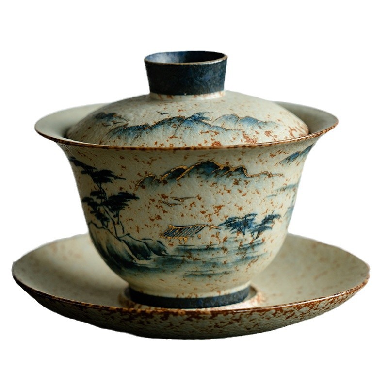 山水三才盖碗茶杯家用泡茶器古风带盖陶瓷茶碗