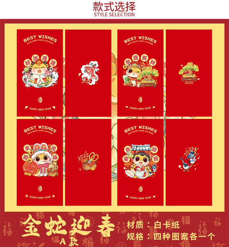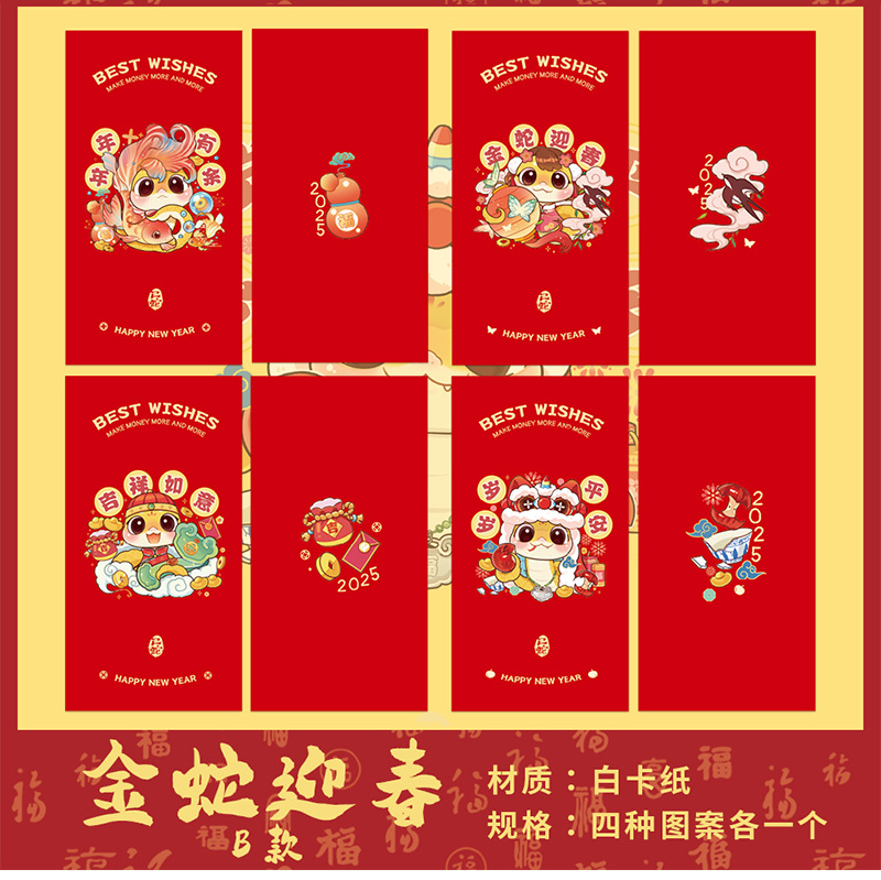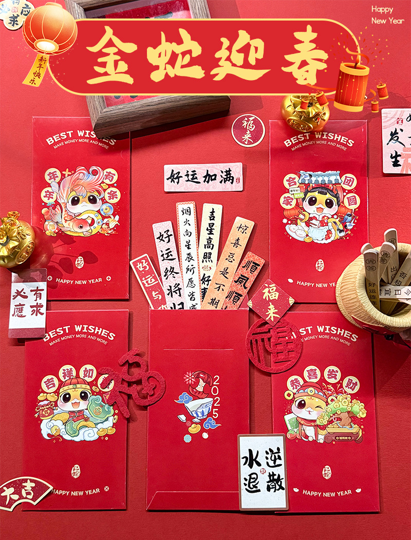 2025蛇年送福红包恭贺新春送长辈送小孩福意满满年年有余时来运转