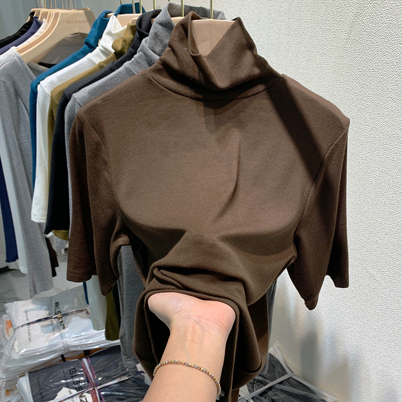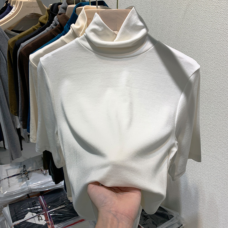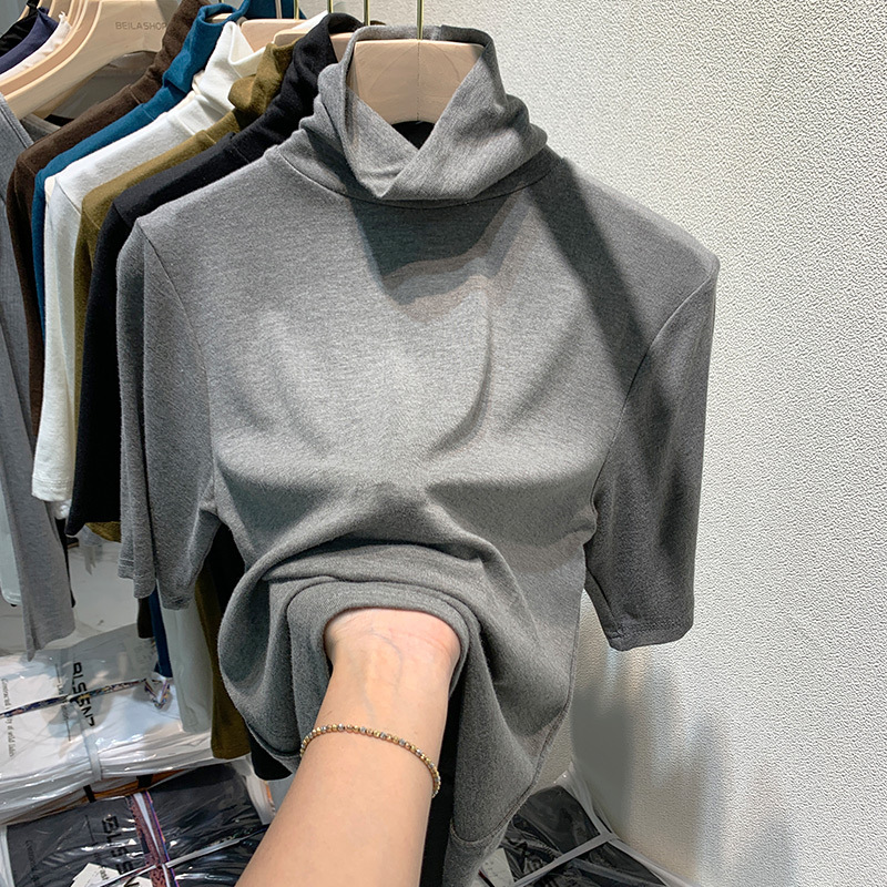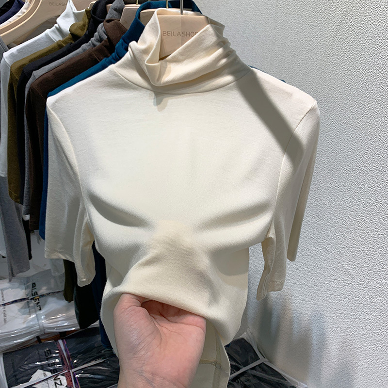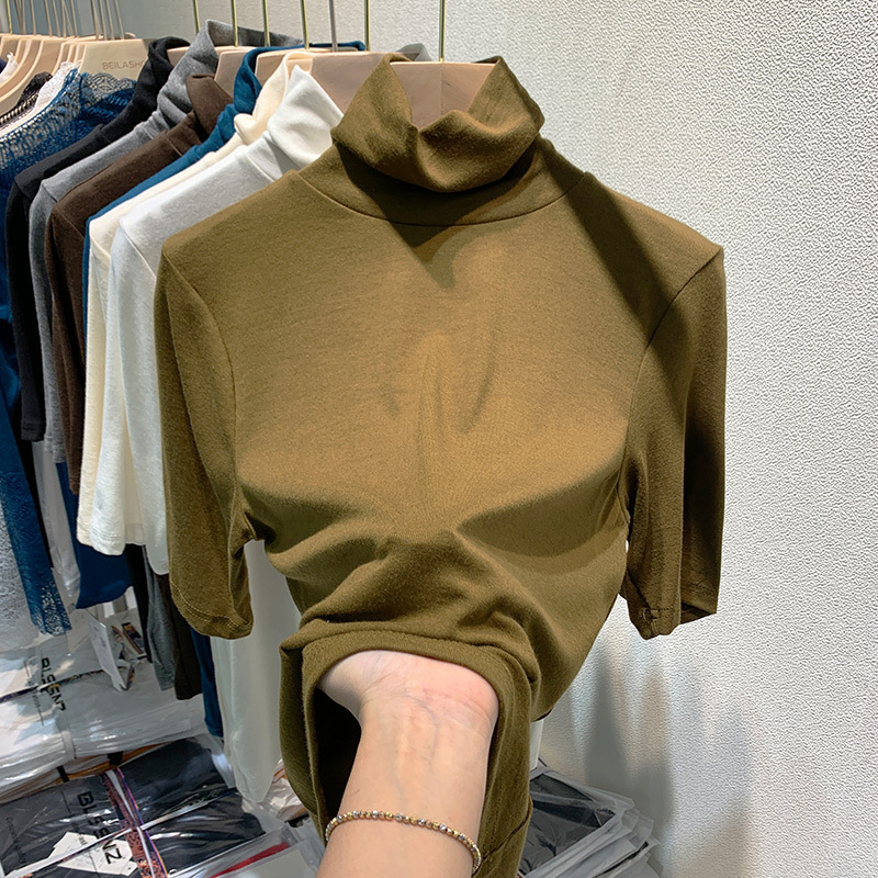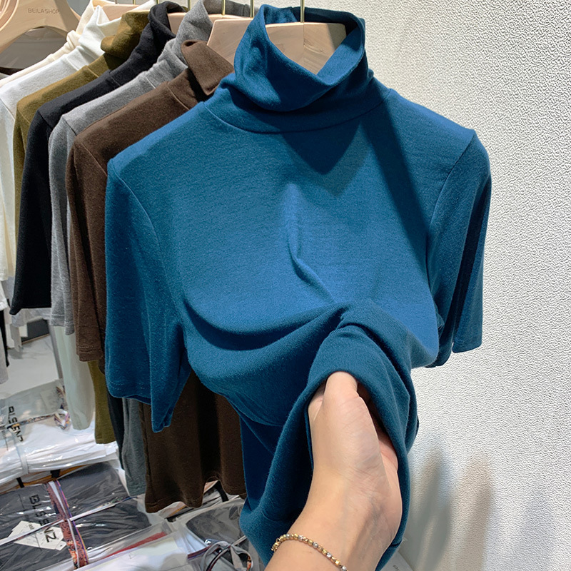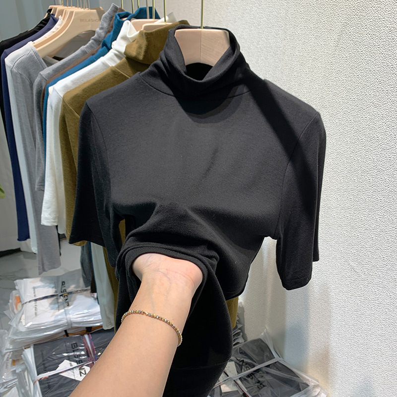 欧货高领打底衫女内搭早秋新款洋气中袖上衣七分袖t恤女短袖